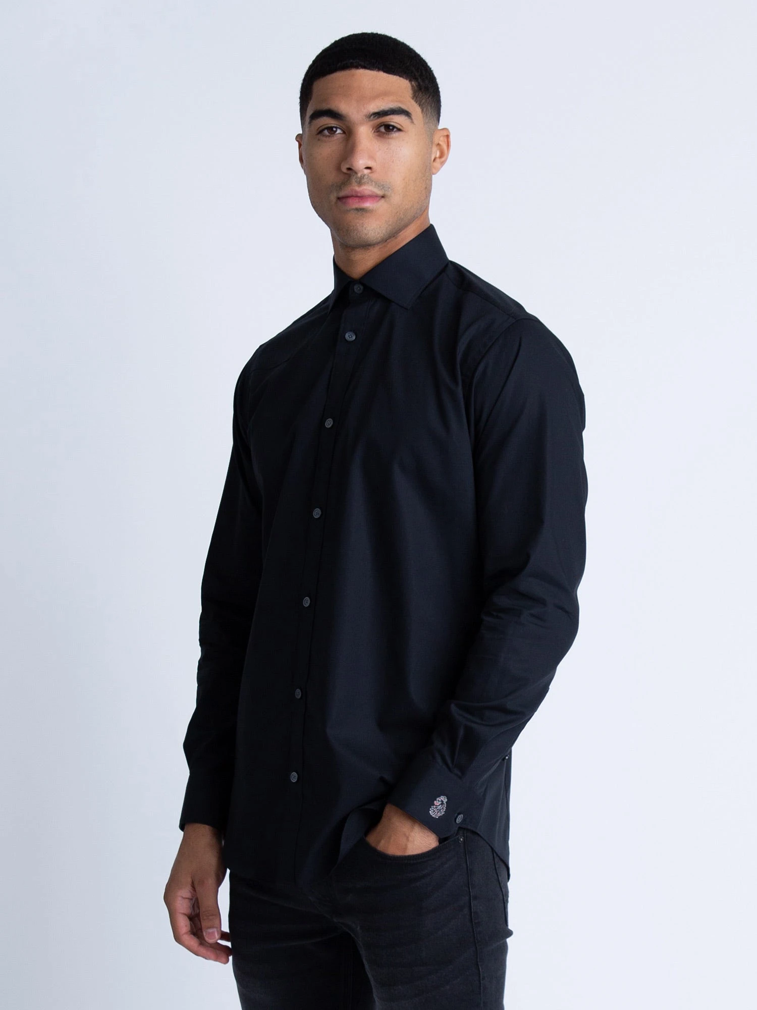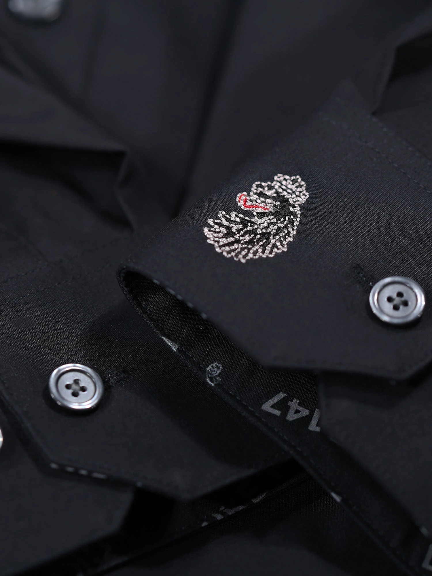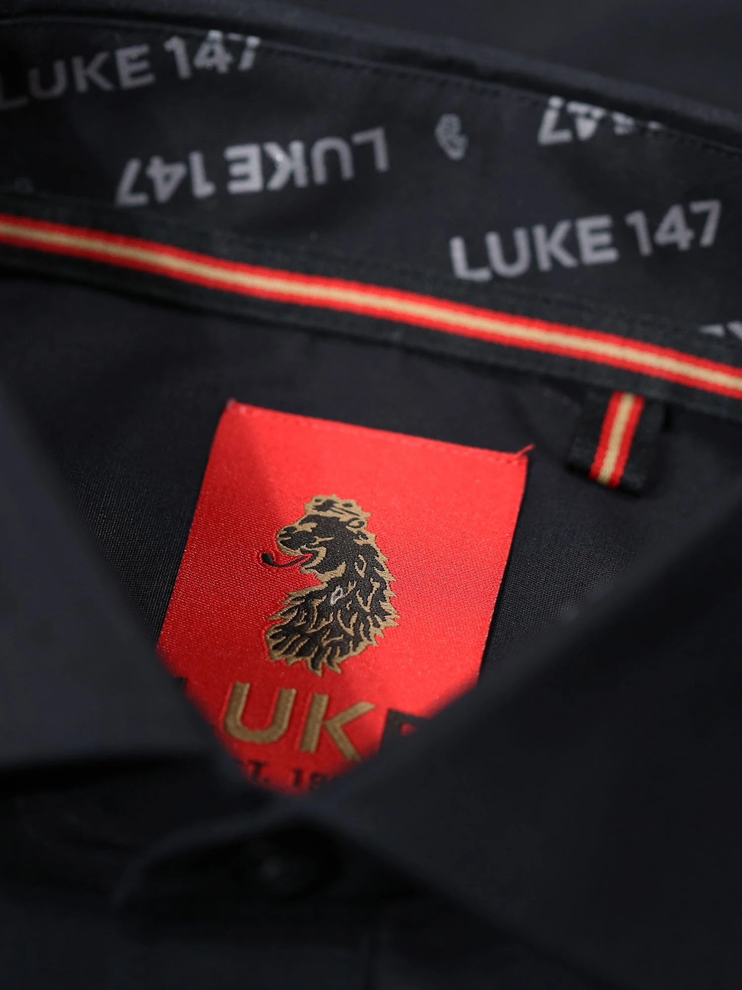 - LUKE 147 text repeat print on internal of collar and cuffs