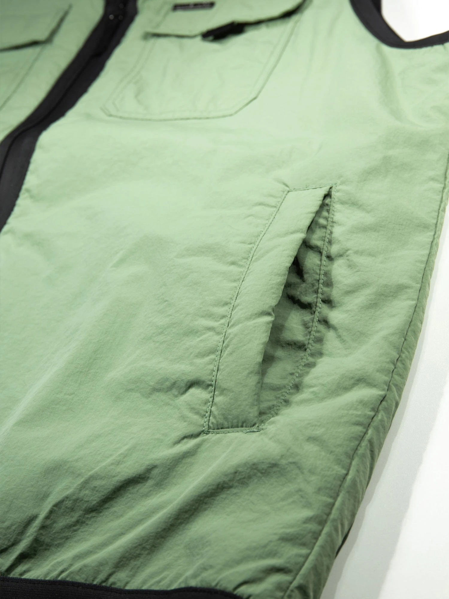 - Binding detail around armholes, hem, zip and neck.
