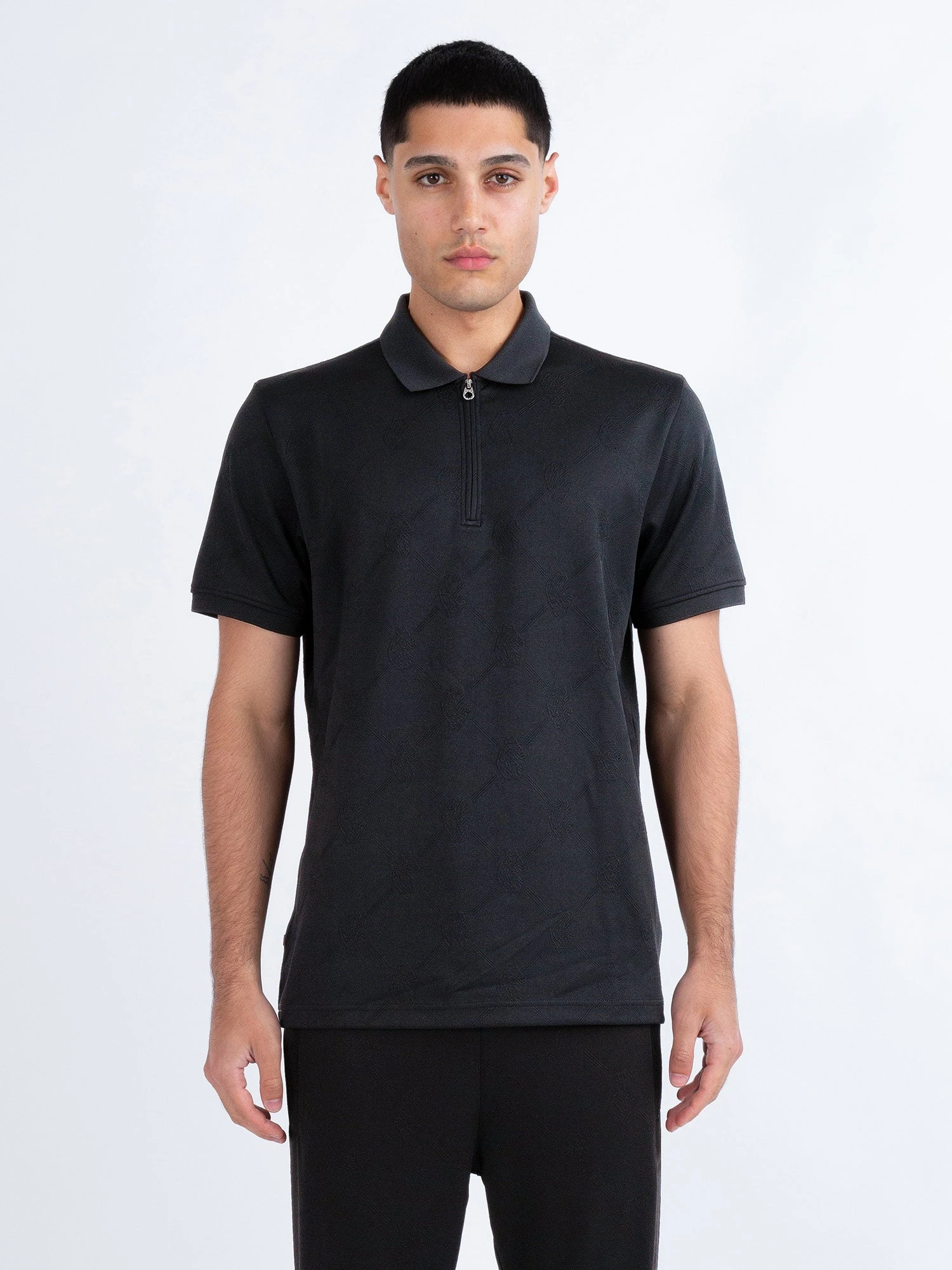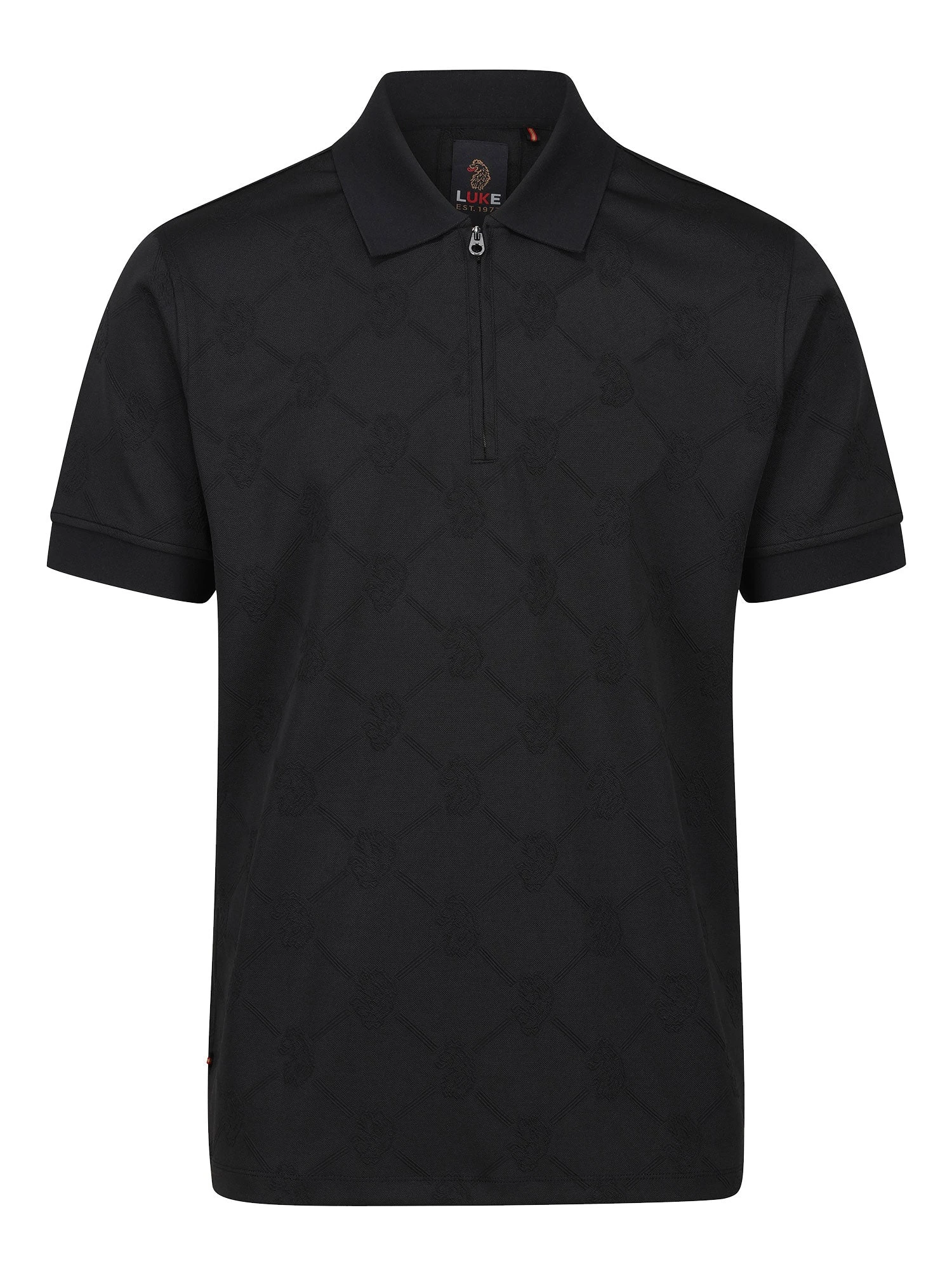 This stylish quarter zip polo from LUKE is the perfect piece to upgrade your off duty looks. Crafted from a subtle all-over repeat lion and stripe jacquard fabric, it features a contrast rib collar and sleeve cuffs. It is then complete with the brand’s iconic LUKE EST. 1977 woven badge on the left chest.