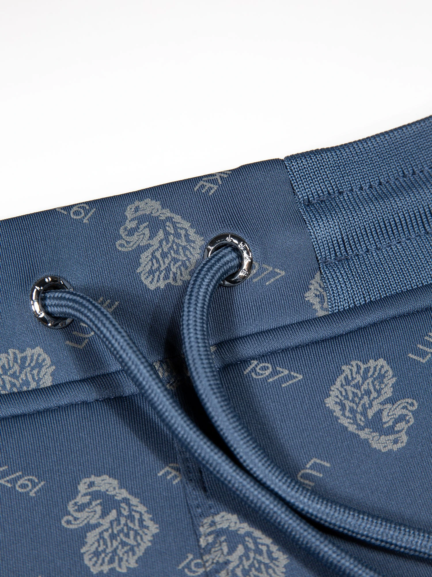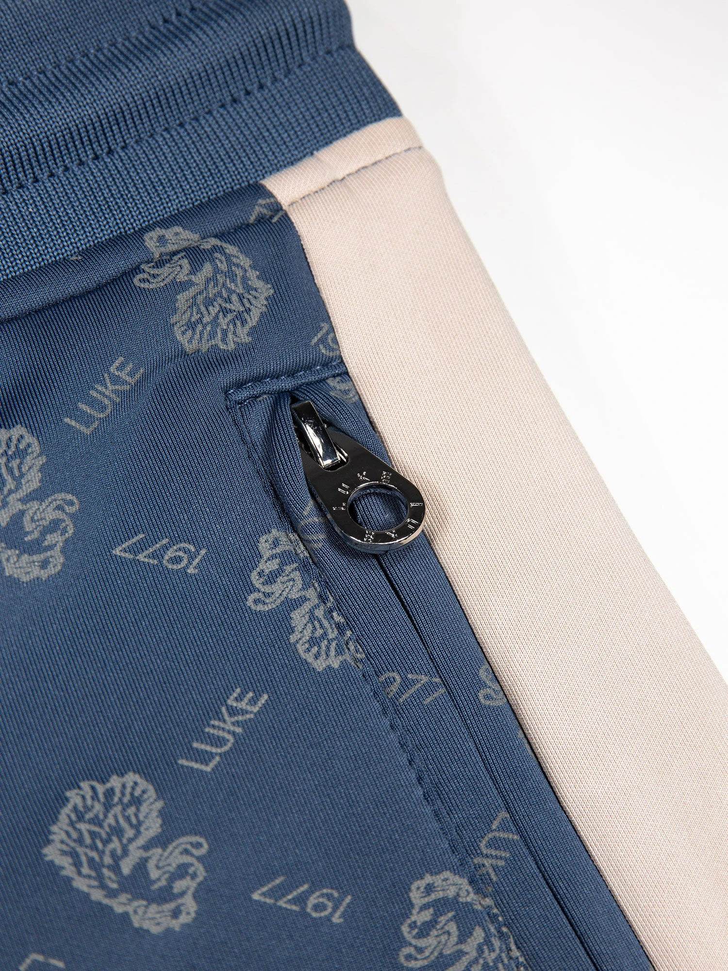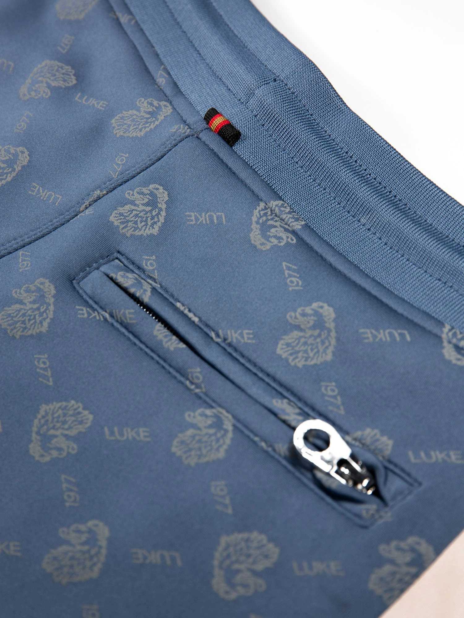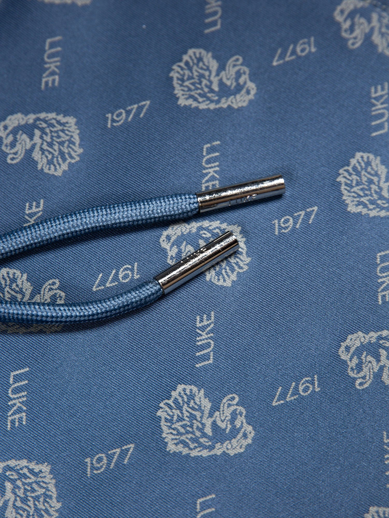 Our luxury tricot shorts from LUKE have been elevated this season with an all-over LUKE EST. 1977 lion repeat print and are detailed with chrome metal trims. They are fitted with a drawcord rib waist- perfect for comfy everyday wear. They are complete with feature zip pockets, handy for all your essentials.