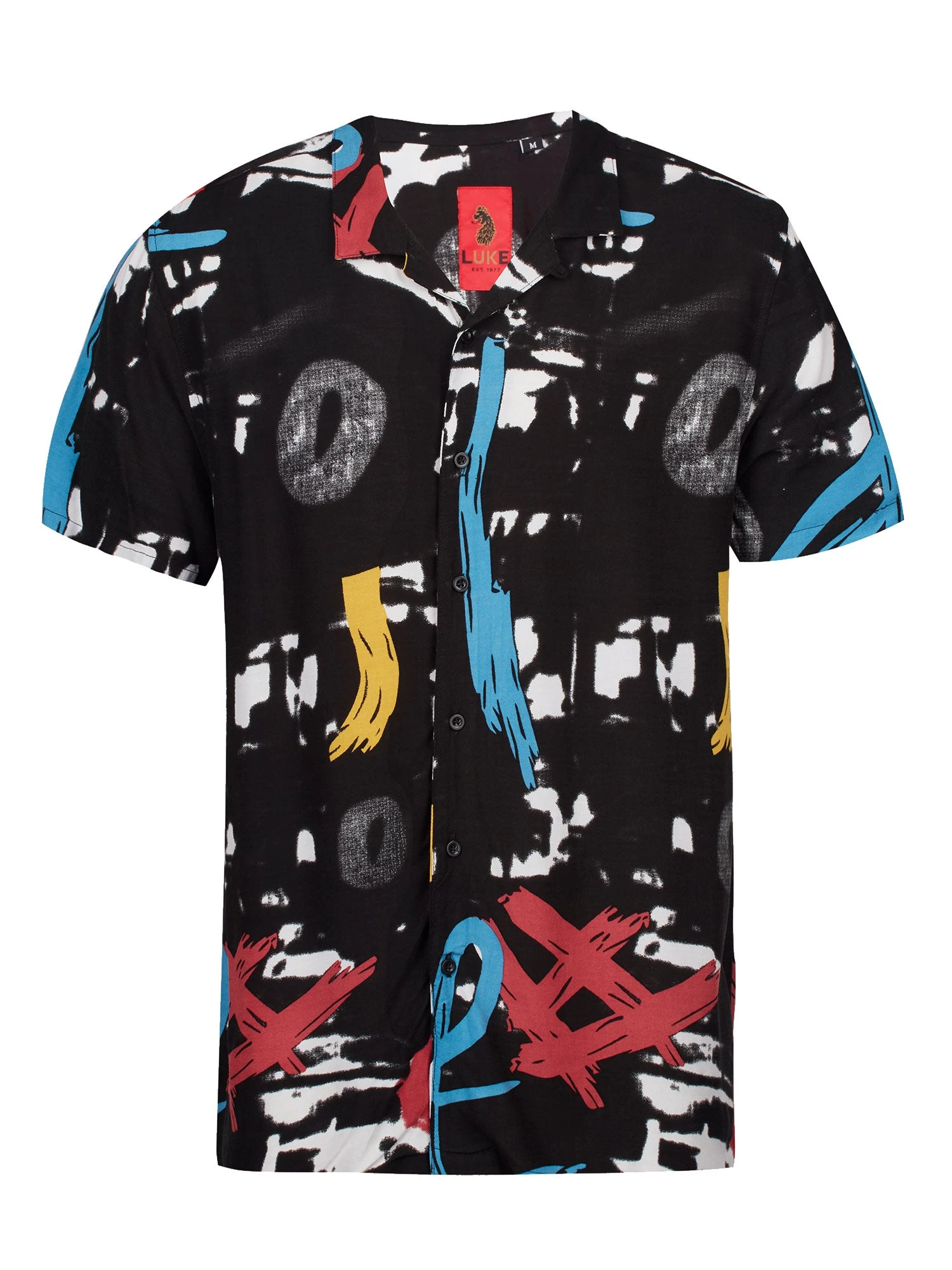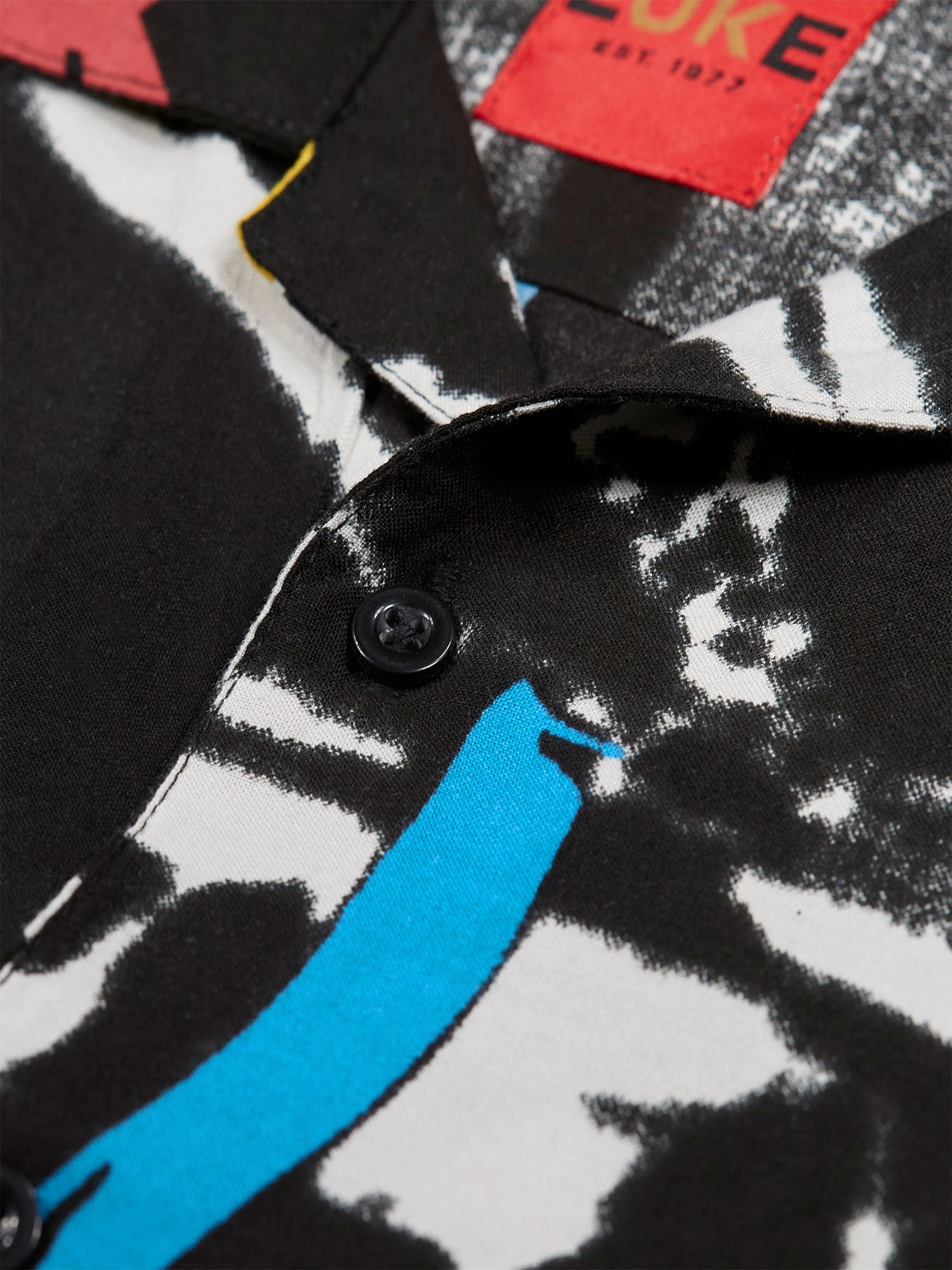 This breezy holiday short sleeved shirt from LUKE is the perfect summer piece. It is soft and breathable and features various printed designs, which change per colourway. It has a cuban collar and front summary placket.