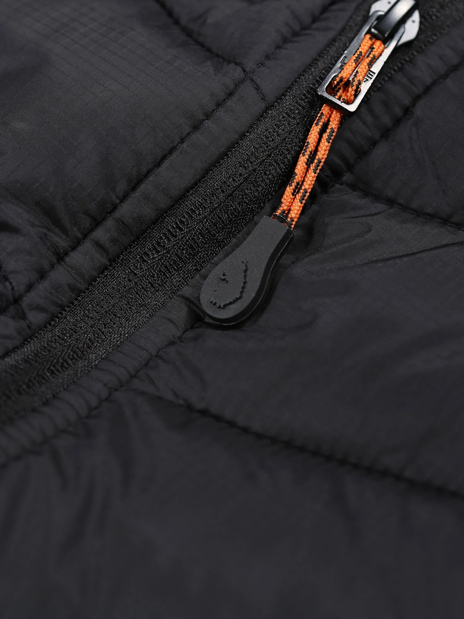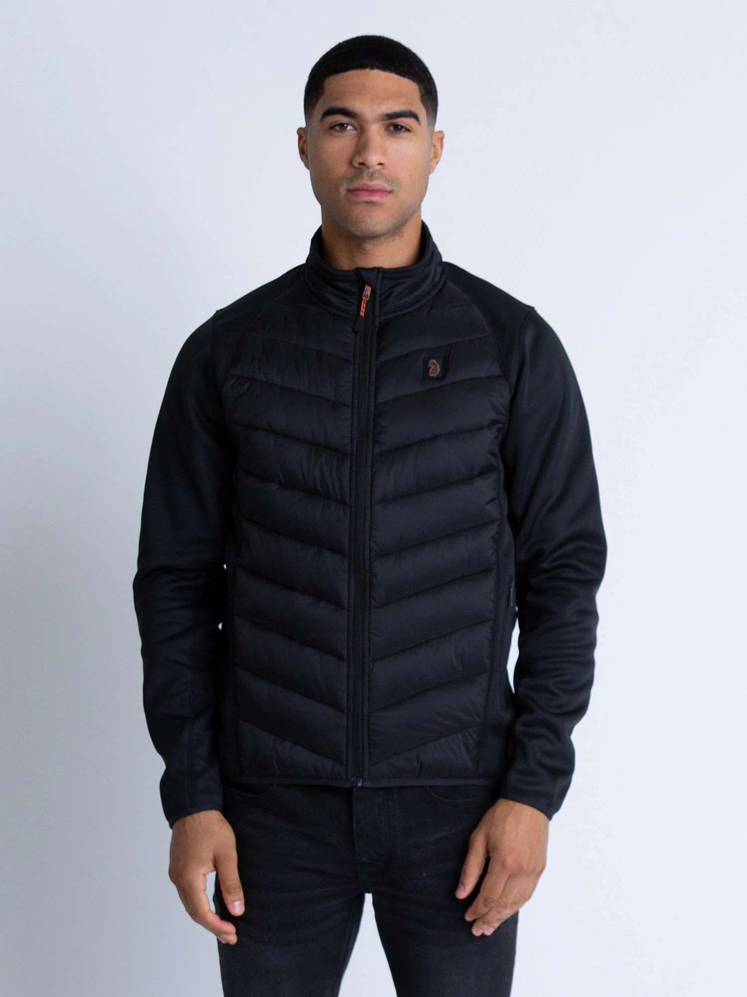 LUKE takes inspiration from traditional outdoors wear with this fabric mix fleece. It is crafted from a bonded fleece and features a quilted ripstop front which is insulated for extra warmth. It is fitted with handy lower zip pockets, detailed with a statement orange bungee cord and it is complete with the brand’s iconic lion head embroidery on the left chest.