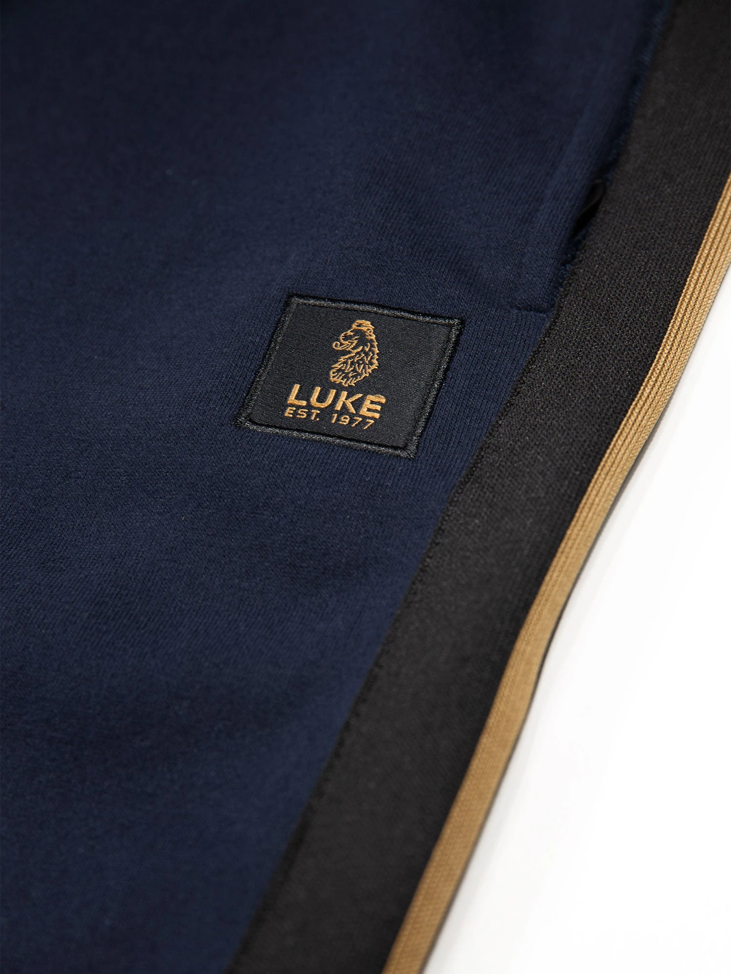 Upgrade your casual wardrobe essentials with these luxury joggers from LUKE. Constructed from our premium vintage tricot fabrication, they feature a comfy drawcord waistband and handy zip pockets. They are detailed with the iconic LUKE vintage trim tape down each leg, as well as the brand’s iconic LUKE EST. 1977 woven badge on the left leg.