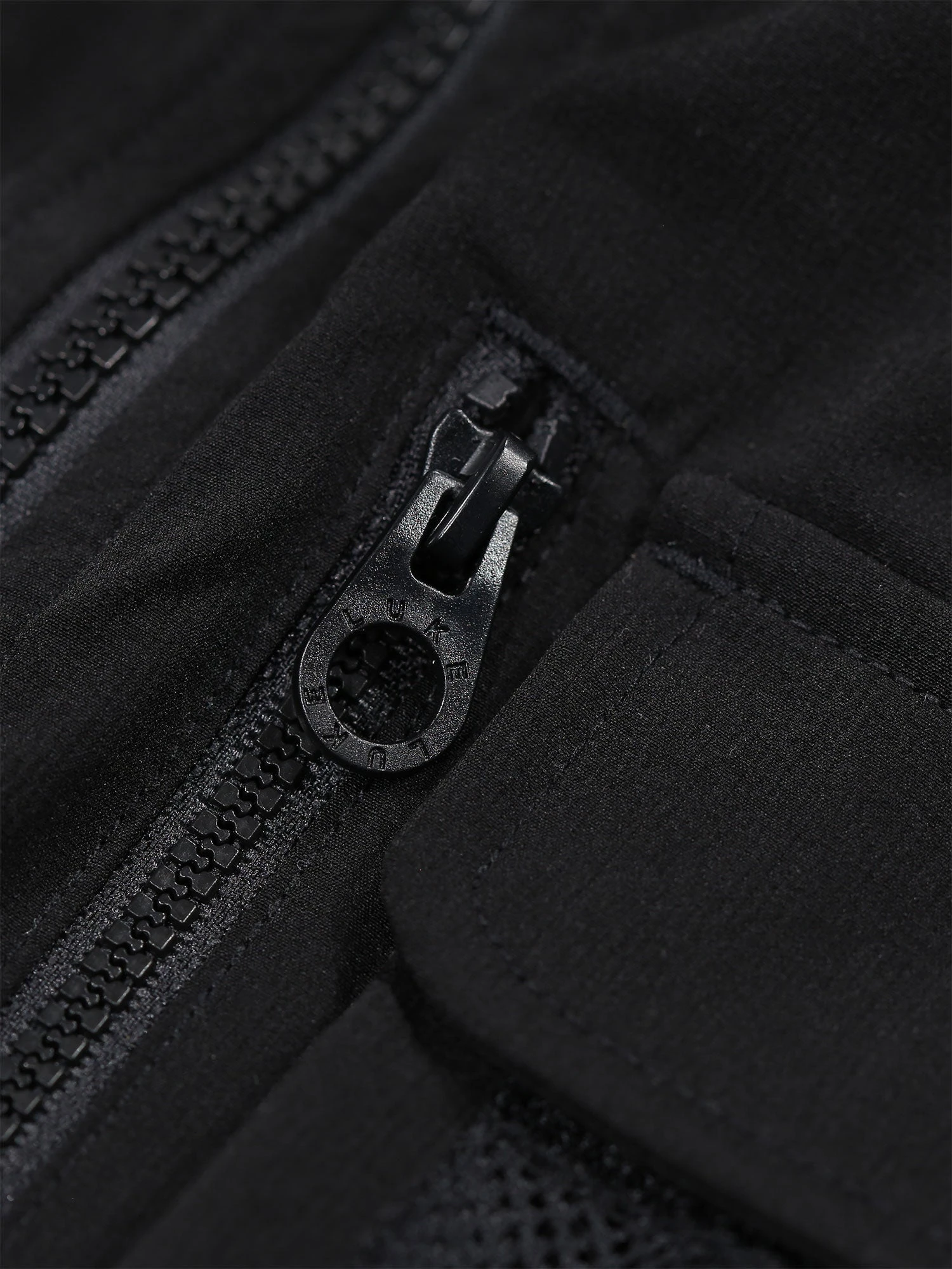 - Vertical matte black vislon zip detail on chest