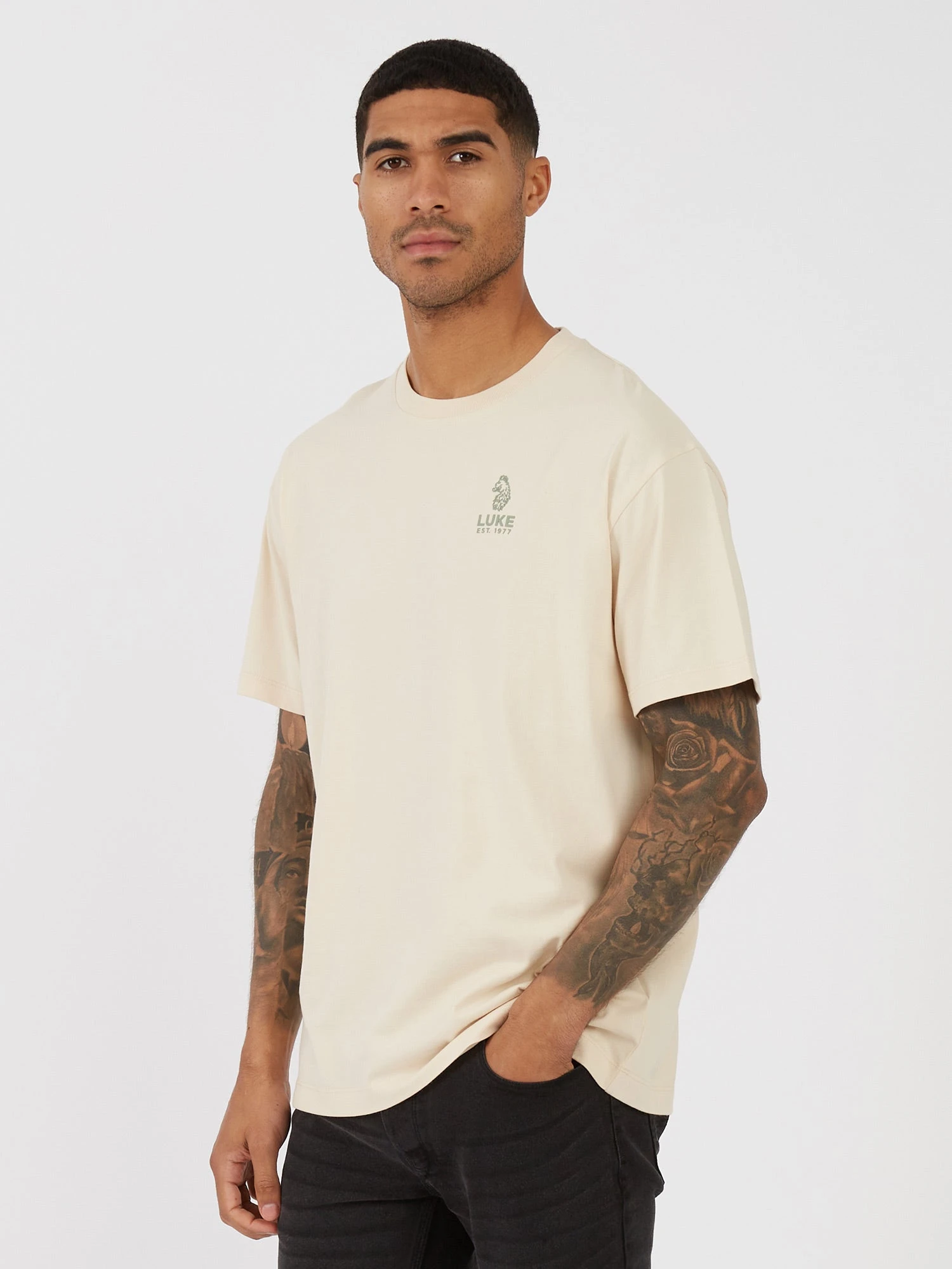 This classic crew neck tee from LUKE is a cool and comfortable addition to your everyday wardrobe. Crafted from pure cotton, it is cut to a relaxed fit and features a soft rib neck. It is detailed with a LUKE EST.1977 raised text print on the left chest and four raised lion head prints on the back.