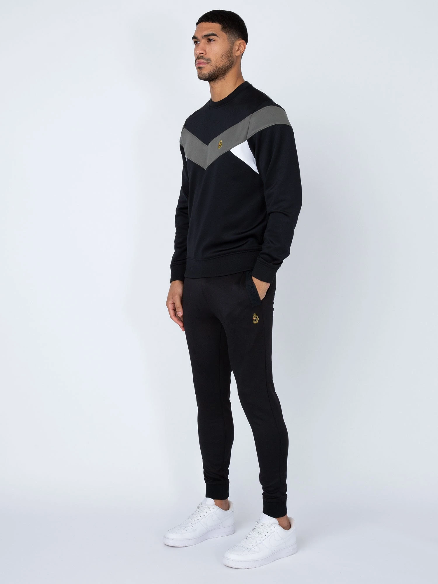 When it comes to sportswear staples, LUKE has you covered with this sweat & joggers set. Crafted from a stretchy tricot, it features contrast cut and sew panels. Sweat is detailed with soft rib trims throughout. Joggers are fitted with a comfy drawcord waistband and handy side entry zip pockets. It is then complete with the brand’s iconic lion head embroidery on the left chest and left leg.
