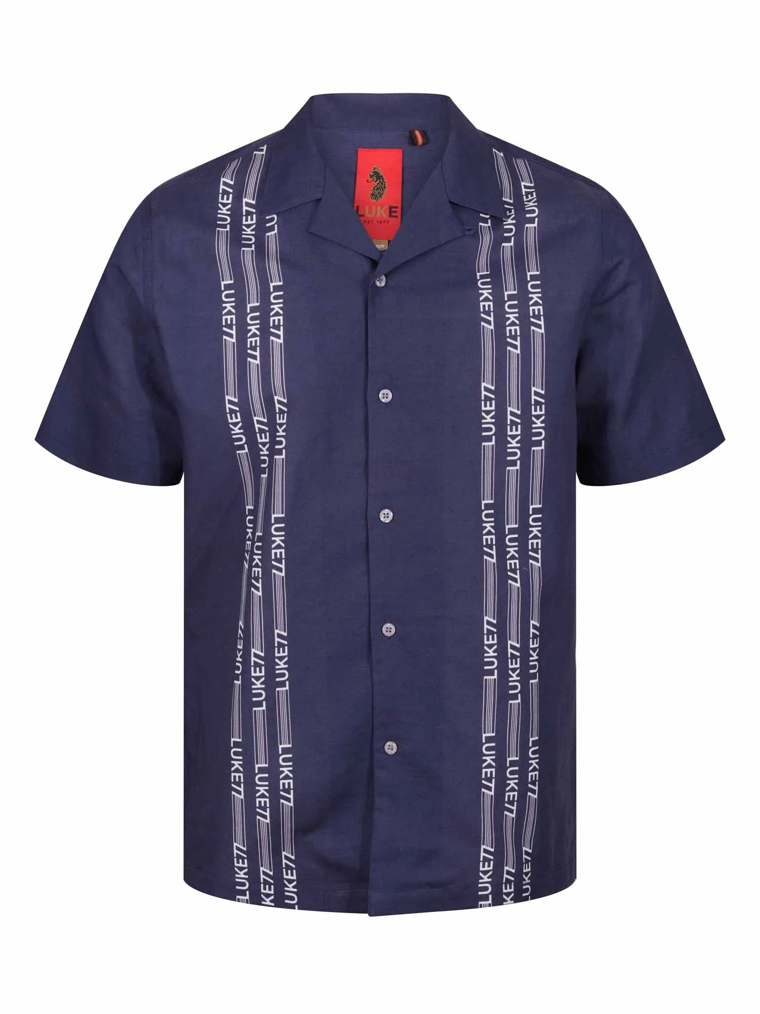 This breezy holiday short sleeved shirt from LUKE is the perfect summer piece. Crafted from a soft and breathable linen mix, it is cut to a relaxed fit and features various printed designs, which change per colourway. It has a classic collar and front summary placket detailed with imitation mother of pearl plastic summarys.