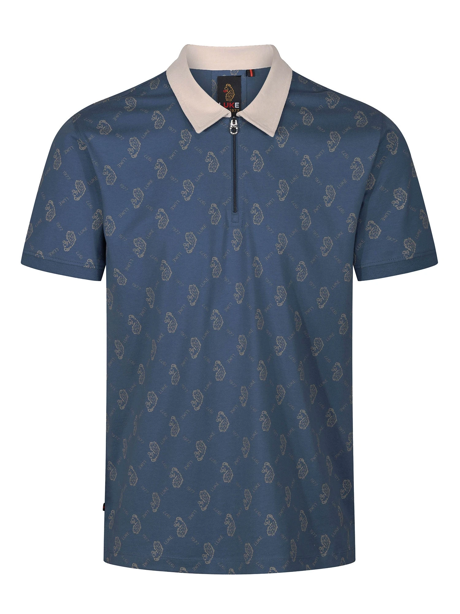 This standout polo from LUKE is crafted from a super soft pure cotton, fitted with a classic collar and is detailed with a stylish chrome quarter zip. It also features an all over LUKE EST. 1977 lion repeat print with the brands iconic LUKE tri-colour trim tape to complete the look.