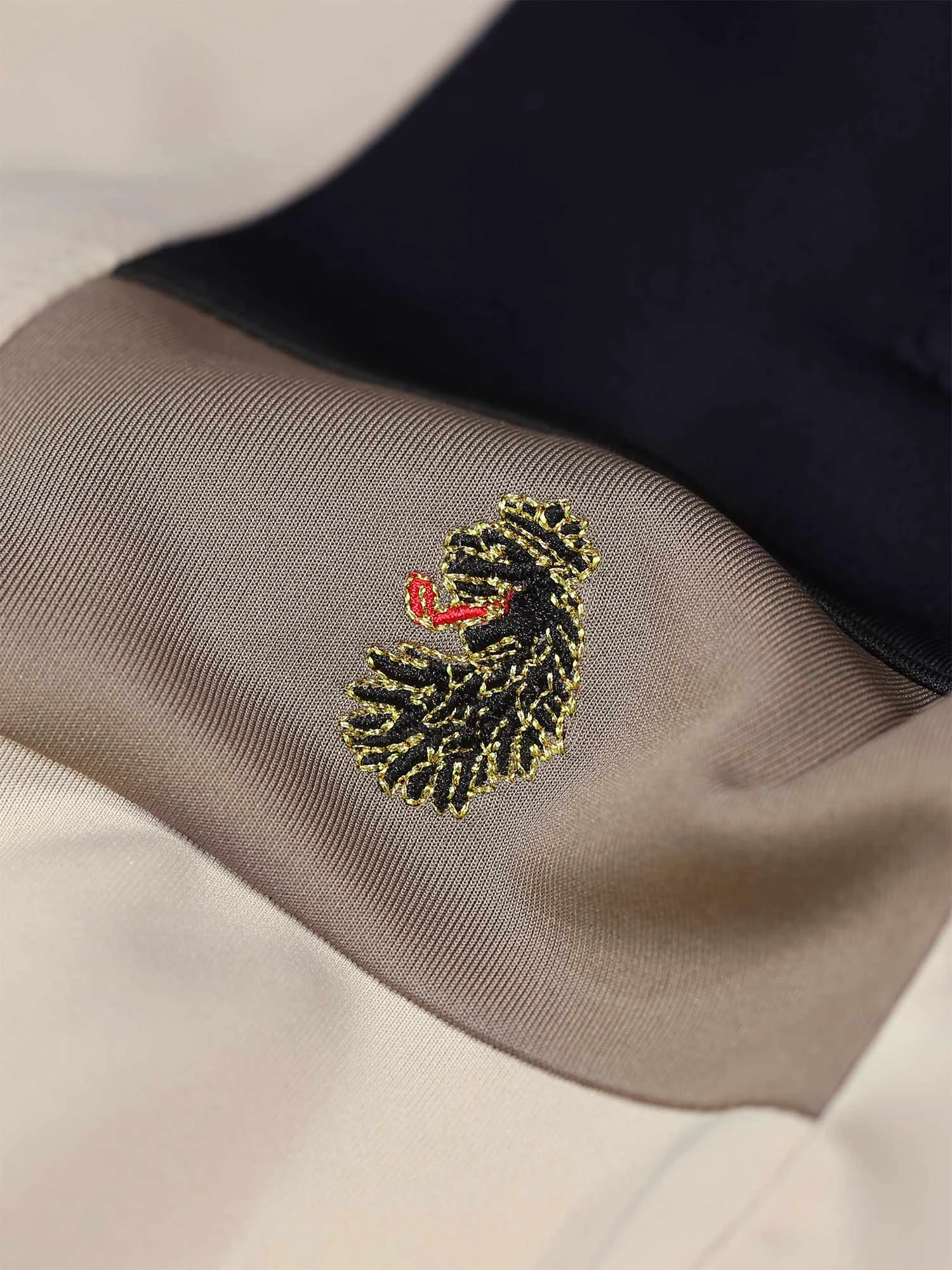 - Iconic BLACK, GOLD, RED lion head embroidery