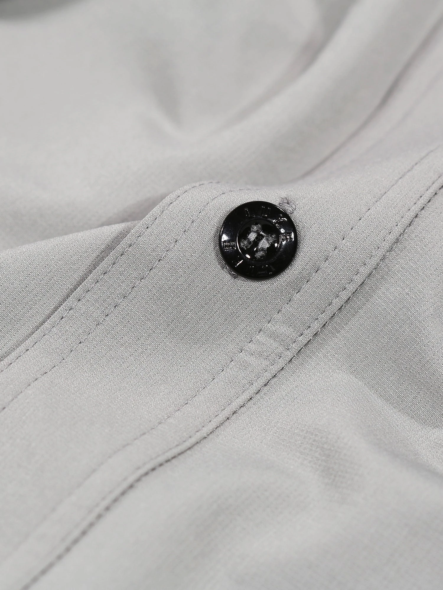 - Matte black plastic zip chest pocket