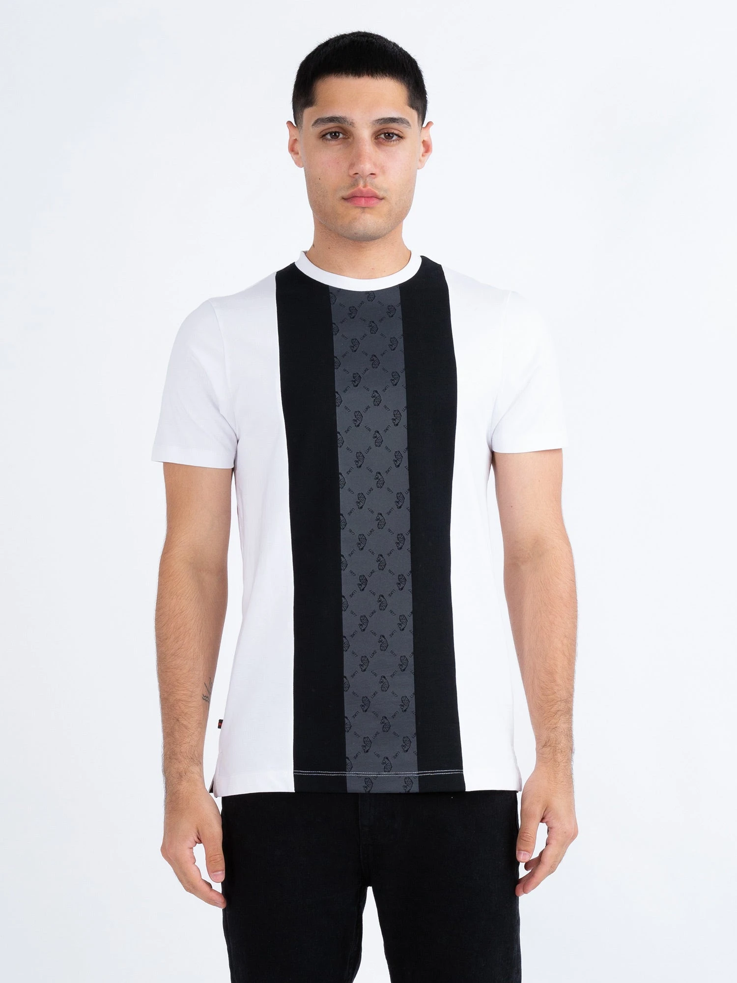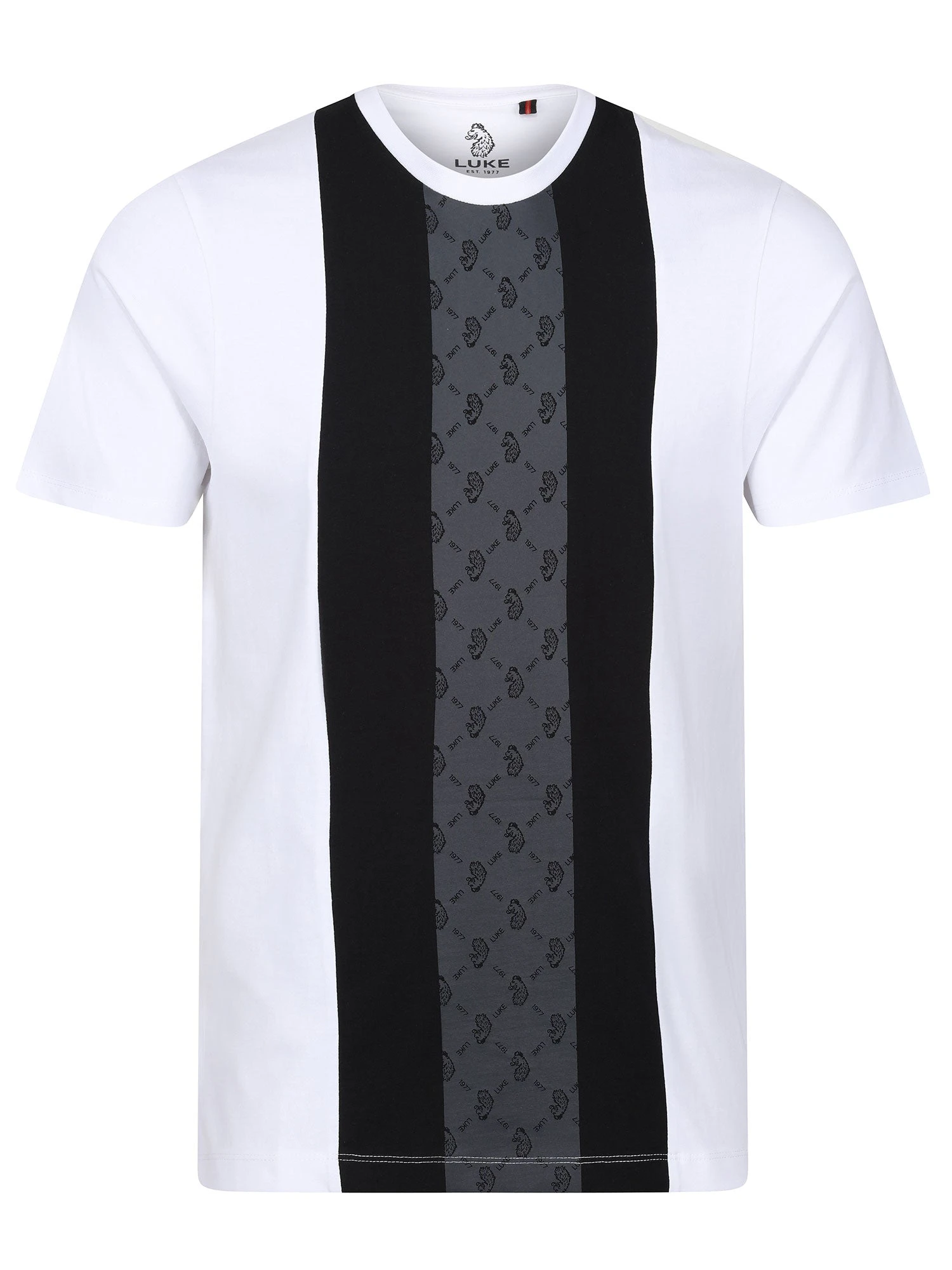 Upgrade your casual wardrobe with the KANE tee. The style is a regular fit with side splits at the hem, finished with the iconic LUKE tri-colour trim tape. Super soft and breathable, this style is crafted from 100% cotton and features contrast vertical panelling with the iconic LUKE 1977 lion head overprint design.