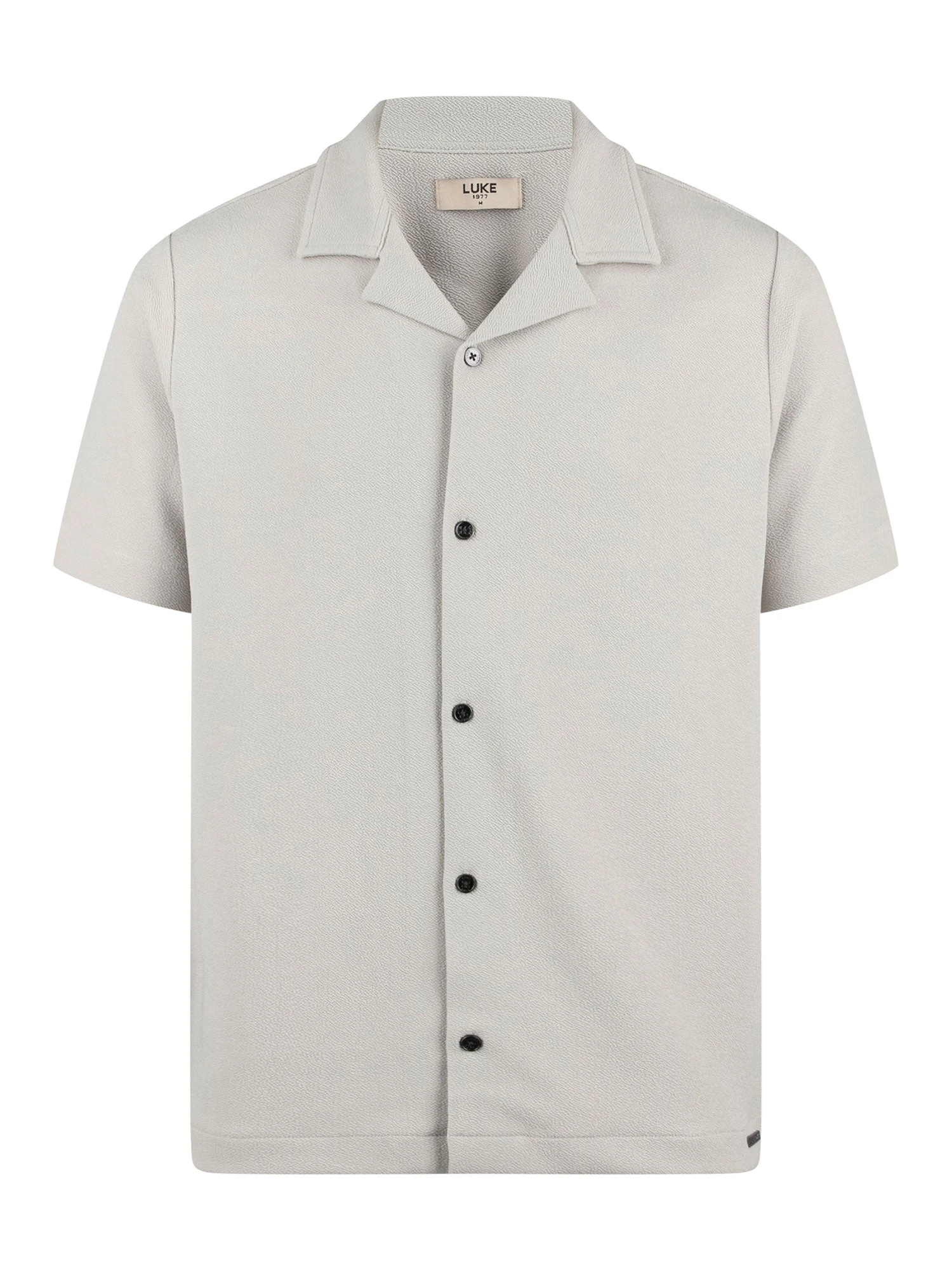 This short sleeve shirt from LUKE is the perfect summer piece. Crafted from a crinkle polyester making it a wardrobe staple. It features a Cuban collar and front summary placket. The style is then signed off with the iconic LUKE branded shiny summarys and metal rivet on the left hem.