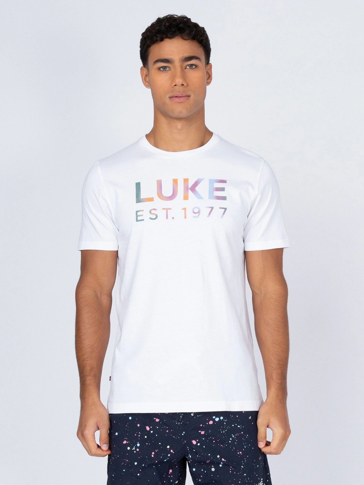 This classic crew neck tee from LUKE is a cool and comfortable addition to your casual wardrobe. Cut from a luxury pure cotton, it is fitted with a soft rib neck and features a LUKE EST. 1977 print in multi-colour across the chest.