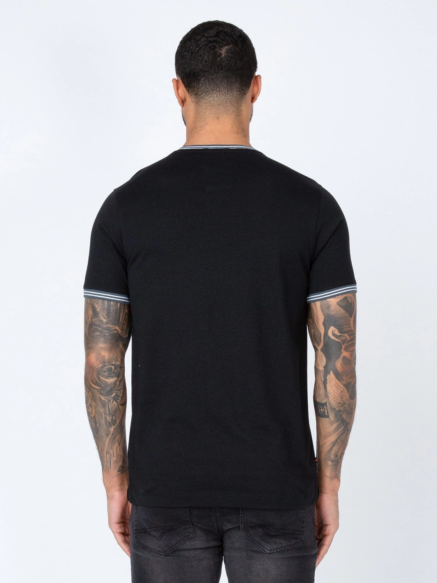- Contrast rib neck and cuff detailed with contrast tipping
