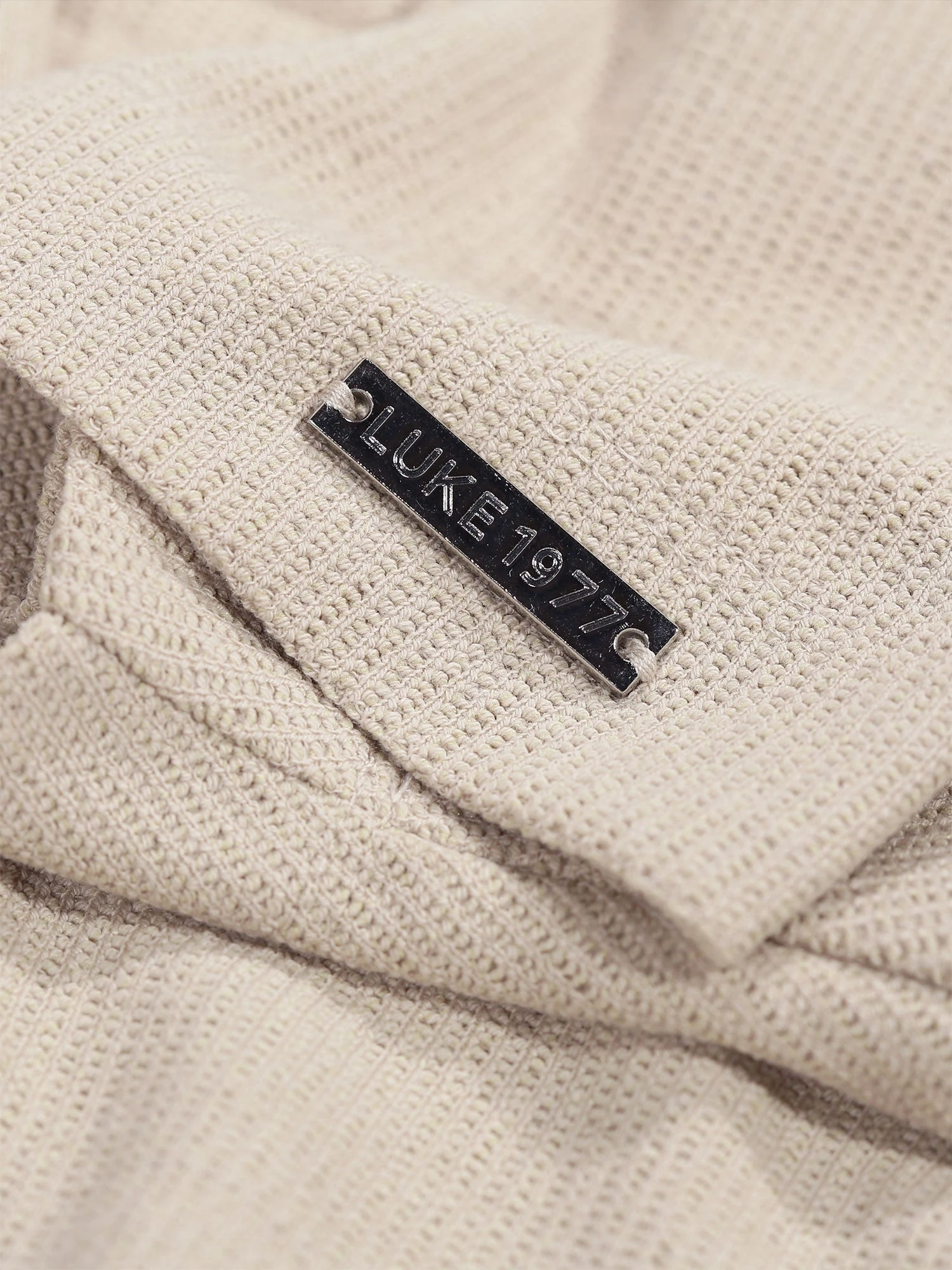 This textured polo & shorts set from LUKE is the perfect smart-casual piece for the summer months. Is constructed from a lightweight cotton blend. Polo features a classic collar and summary placket detailed with colour match horn summarys. Shorts feature a comfy drawcord waist and handy side pockets. The look is then complete with a subtle LUKE 1977 metal bar on the left sleeve and above rear pocket on the shorts.