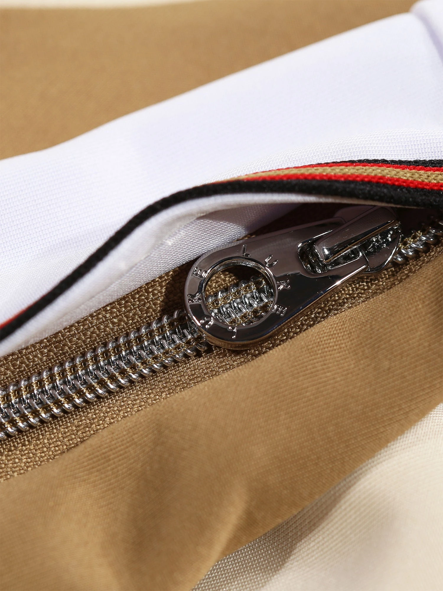 - LUKE chrome metal zip puller and teeth