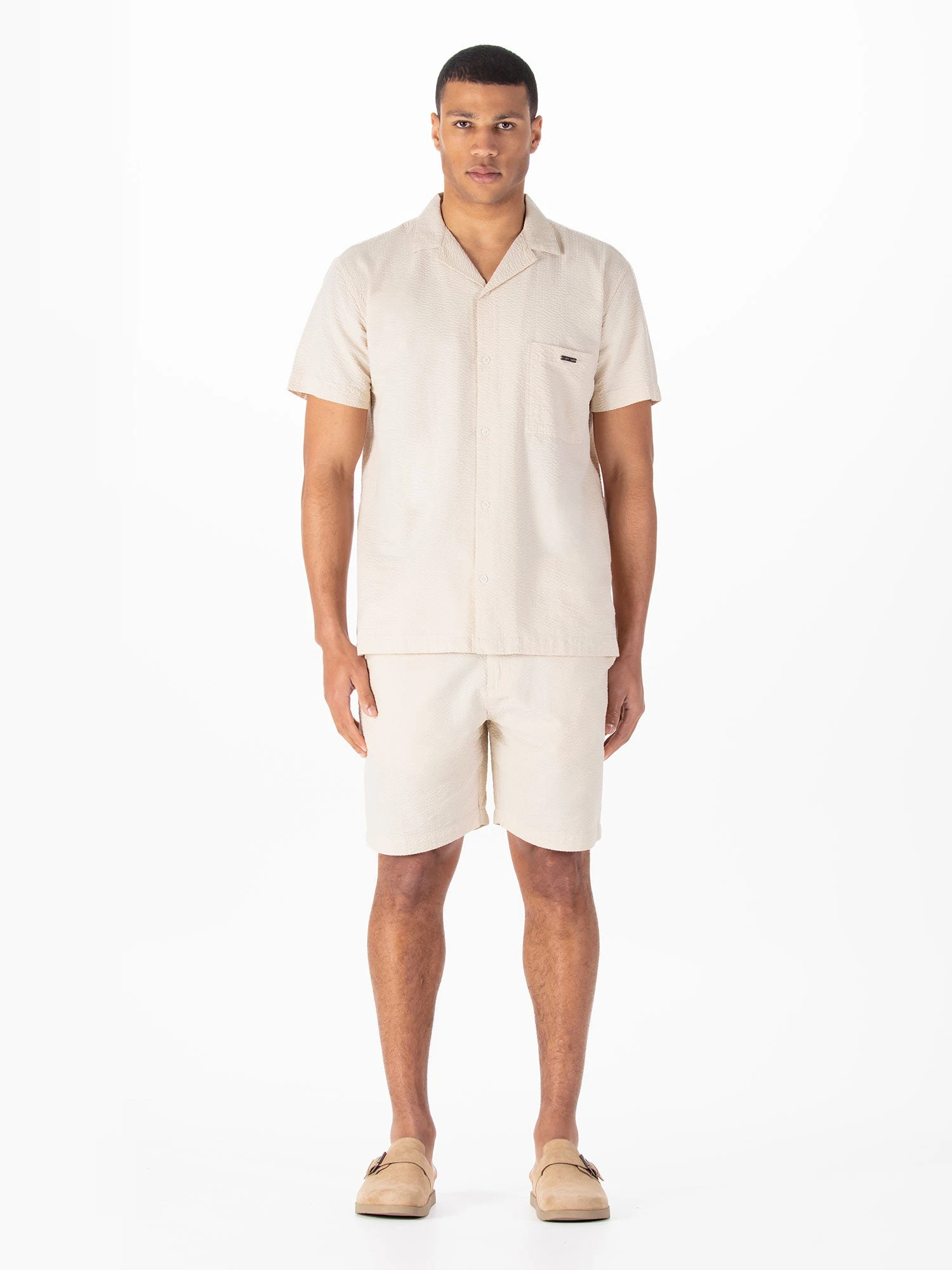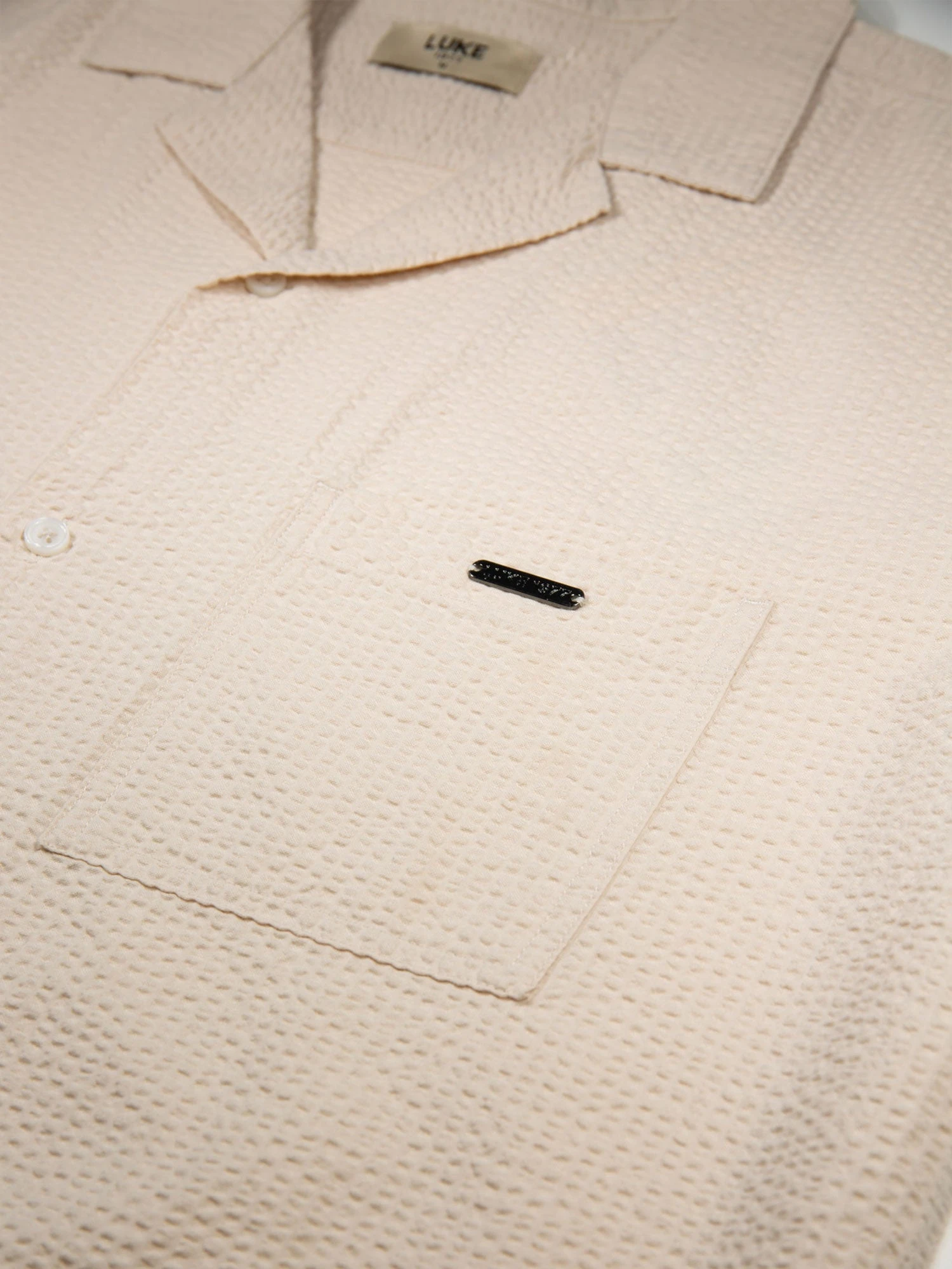 Get vacation ready with this short sleeved shirt & shorts set from LUKE, cut from textured cotton, perfect for those summer months. Shirt features a classic summary up front and a left chest pocket with the iconic LUKE 1977 sew-on bar in gloss pewter. Shorts feature an elasticated waistband, a zip up fly as well as two front pockets and one back pocket. The look is then signed off with the iconic LUKE 1977 glossy pewter sew on bar on the left leg.