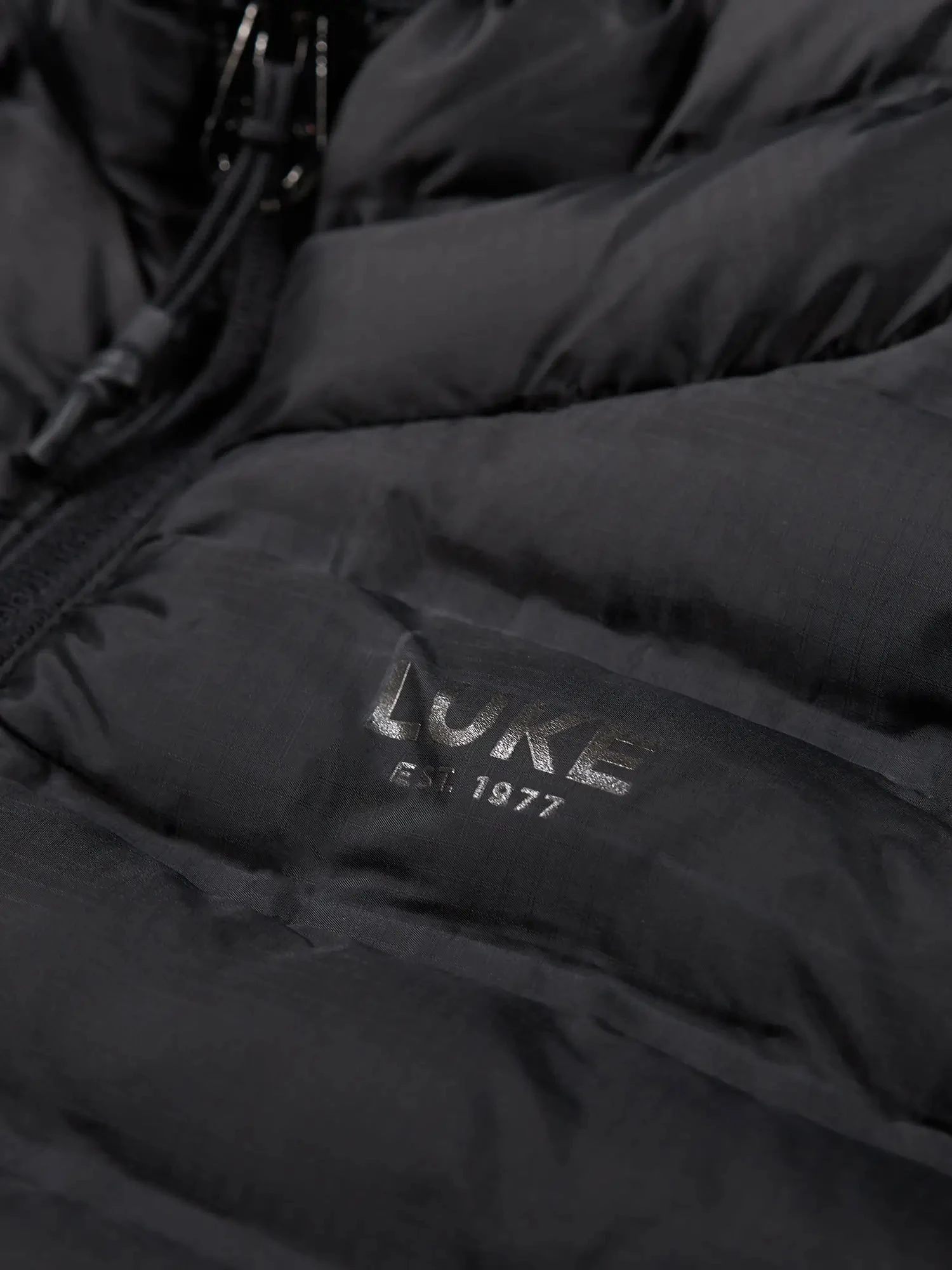The NEW WORLDY hooded jacket is a must for the ultimate protection from the elements. Crafted from twin wall ribstop fabric with recycled wadding, the jacket provides warmth as well as style for the perfect style to explore the outdoors. The jacket features lower front pockets with zipped closure and is signed off with the LUKE EST 1977 silver reflective print on the left chest.