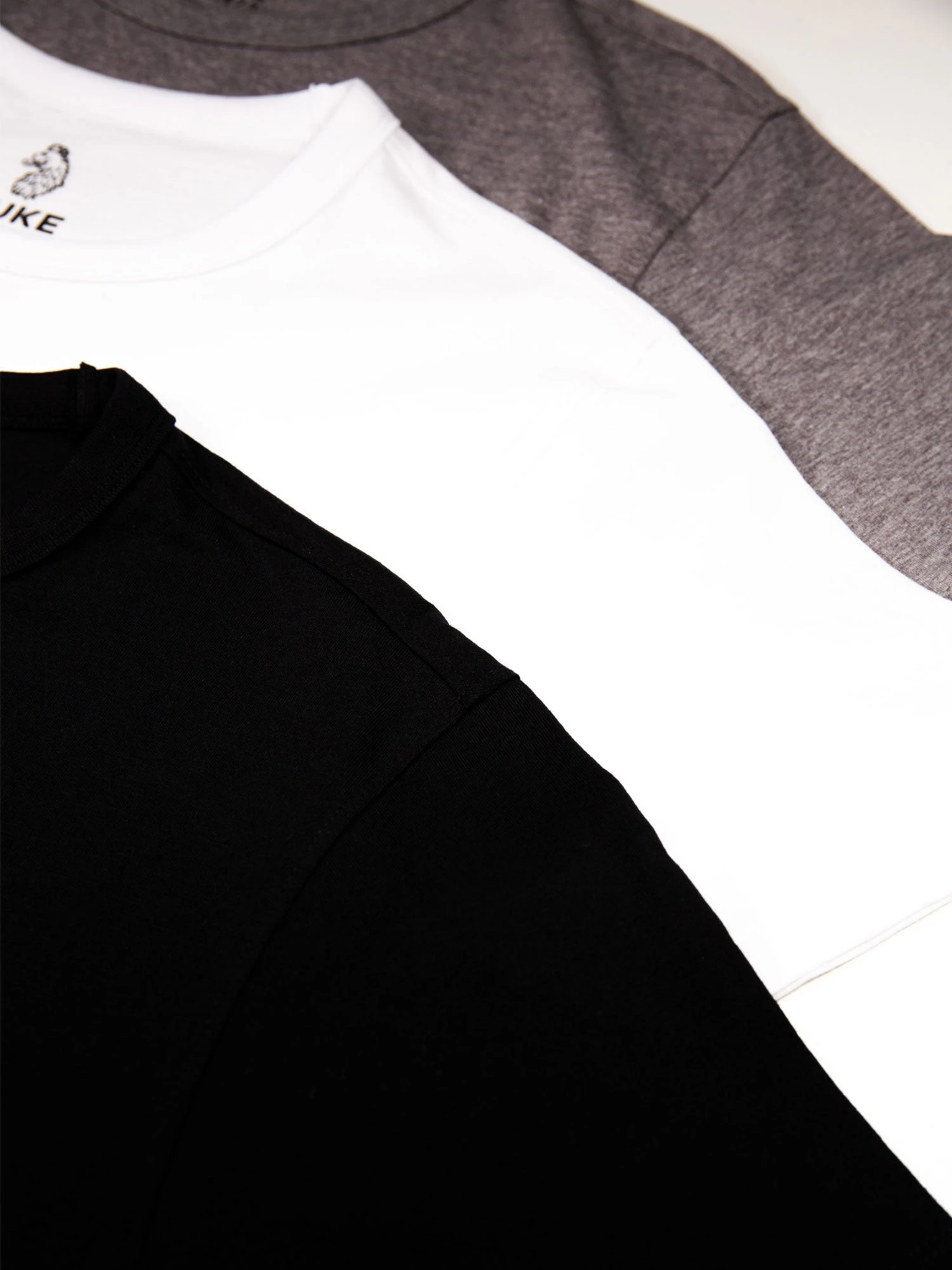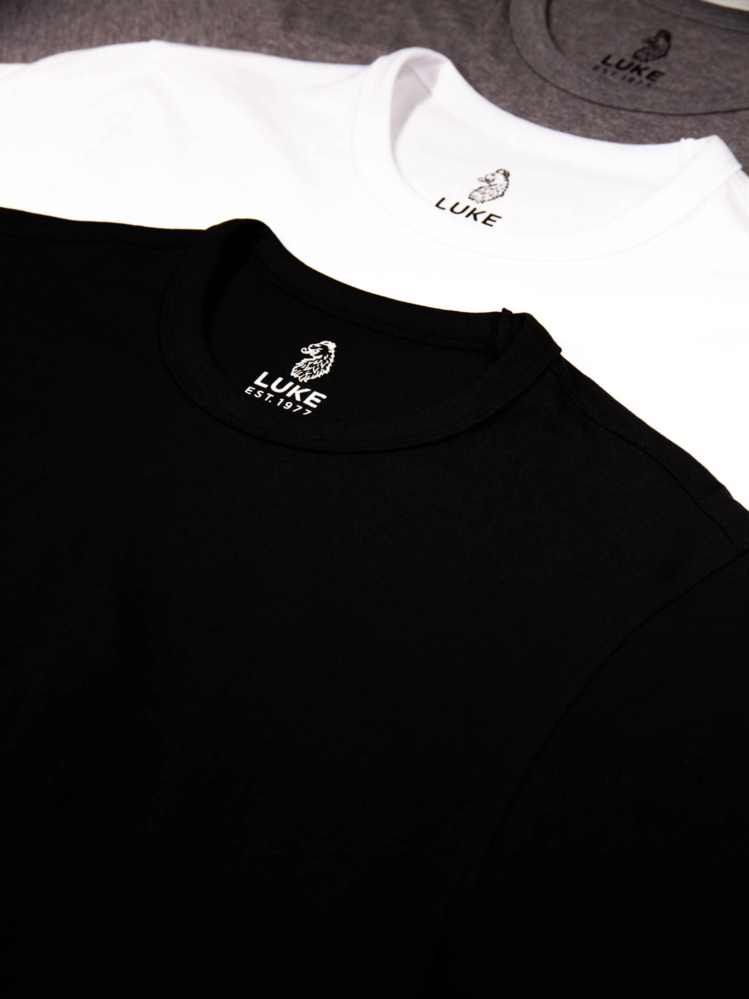 The LUKE essential t-shirt pack, the RECO 3 pack will fit into any wardrobe. The RECO t-shirt is cut from 100% cotton jersey in a regular fit with a soft rib neck for ultimate comfort. The t-shirts feature the LUKE EST 1977 metal rivet on the bottom left.