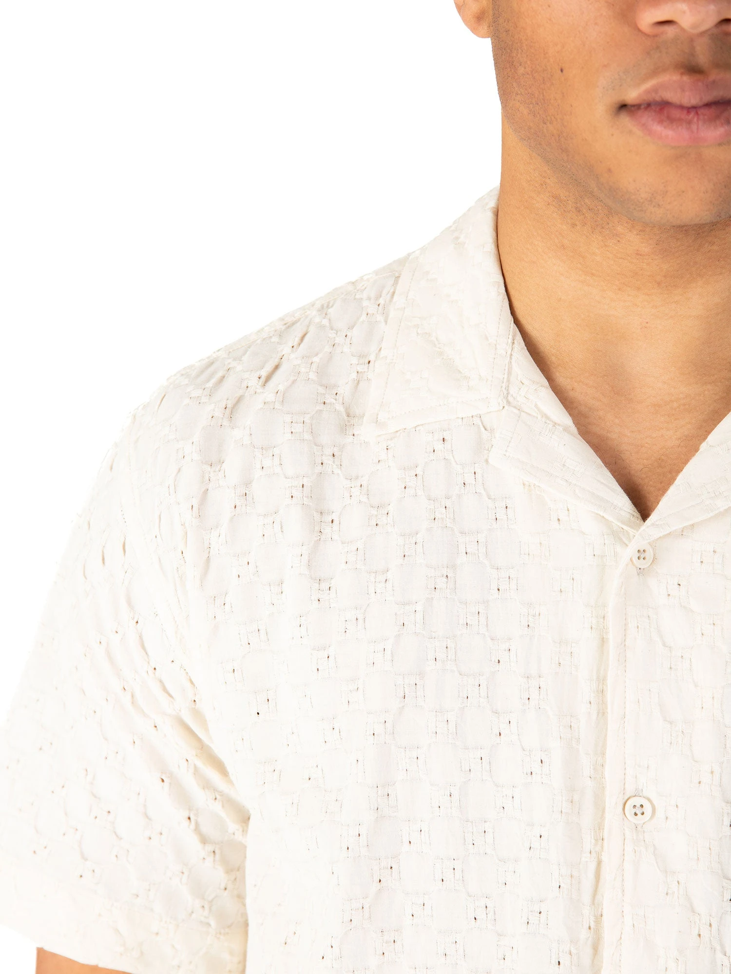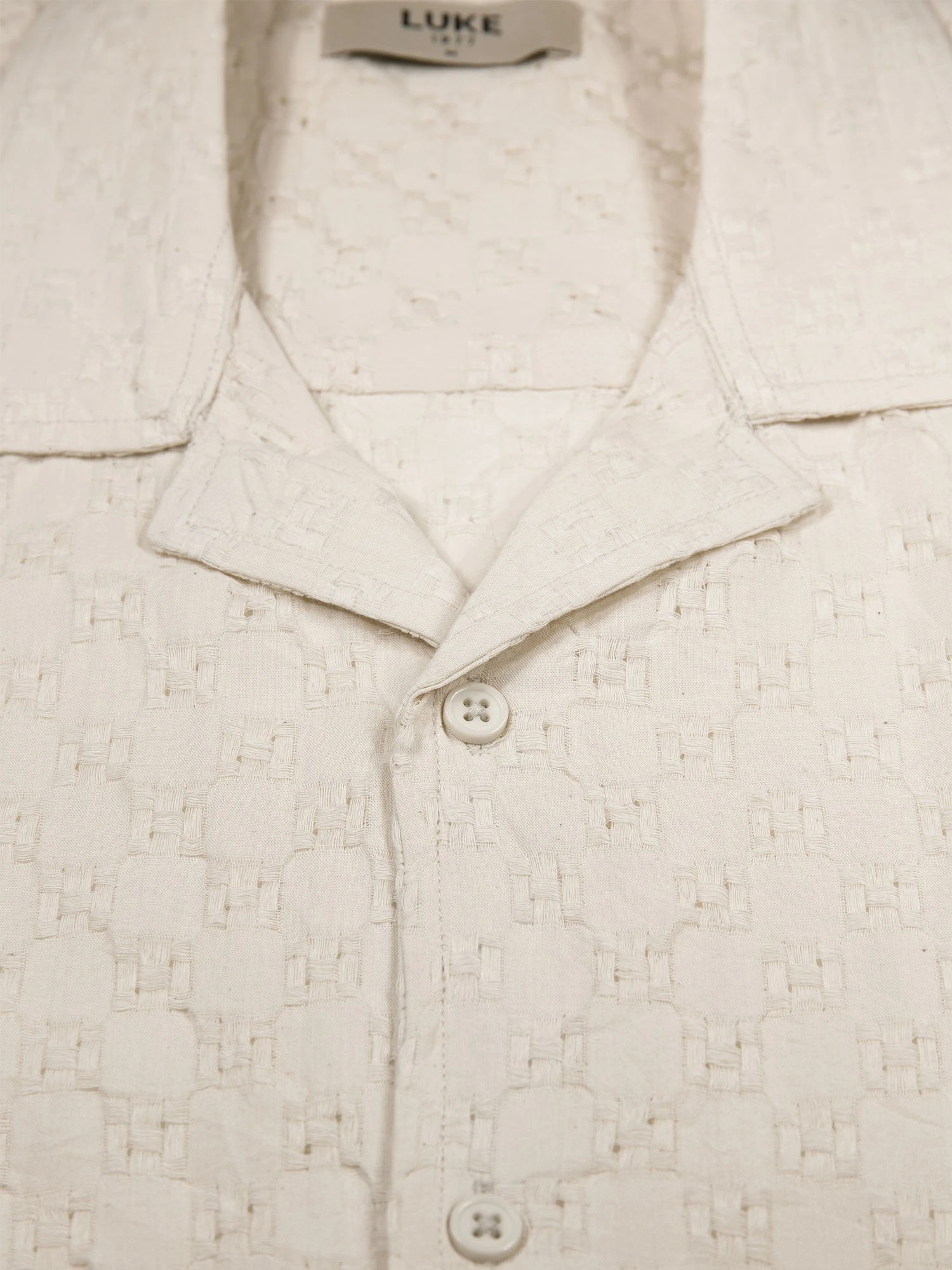 Enjoy summer with the RHODES short-sleeve shirt. This shirt features a soft textured weave, a classic collar and a summary up front. The look is then signed off with the iconic LUKE 1977 metal rivet in dark pewter gloss on the left hem.