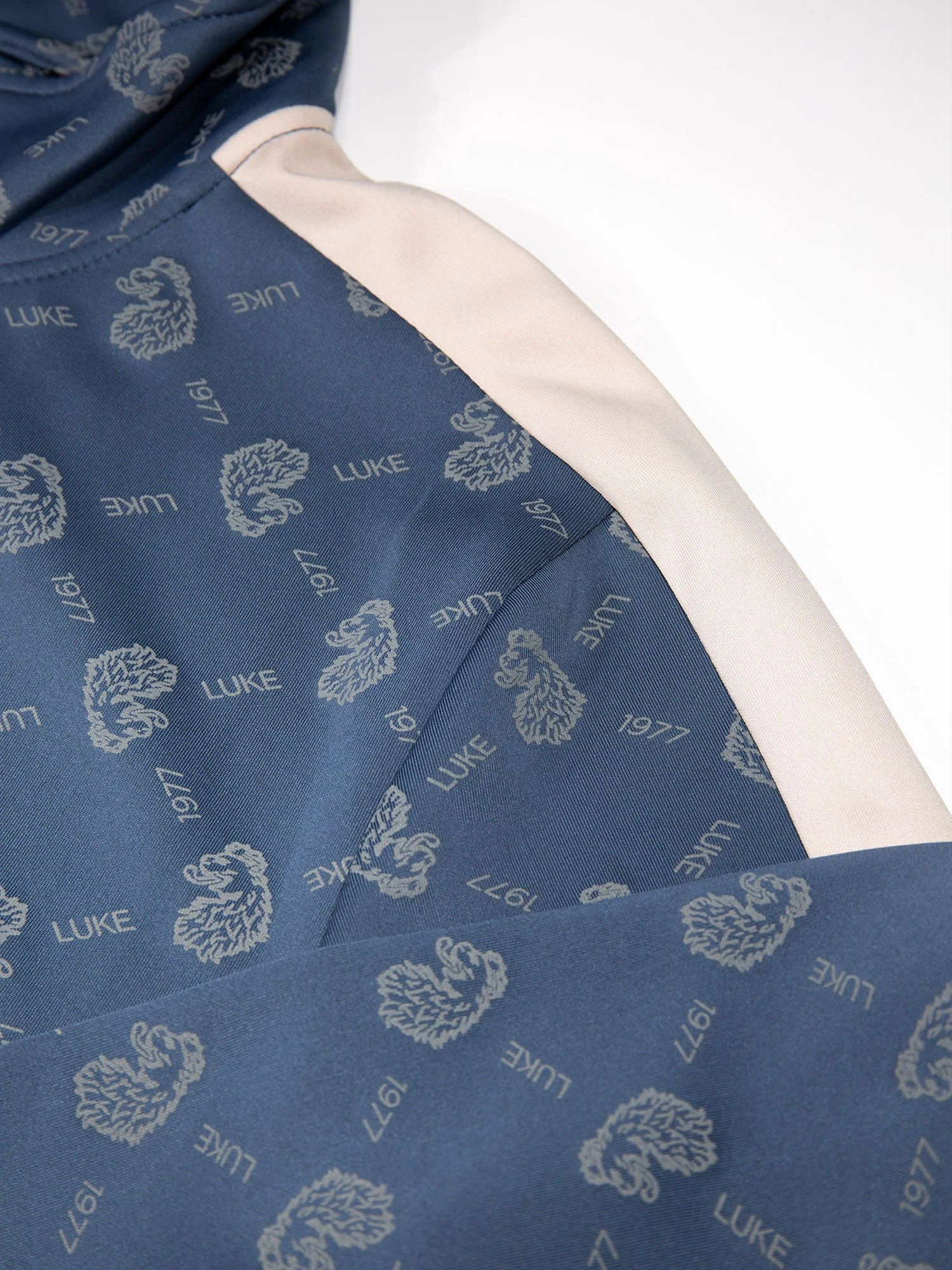 Our luxury tricot joggers have been elevated this season with an all-over LUKE EST. 1977 lion repeat print and are detailed with chrome metal trims. They are fitted with soft rib cuffs and a drawcord waist – perfect for comfortable everyday wear. They are complete with feature zip pockets, handy for all your essentials.