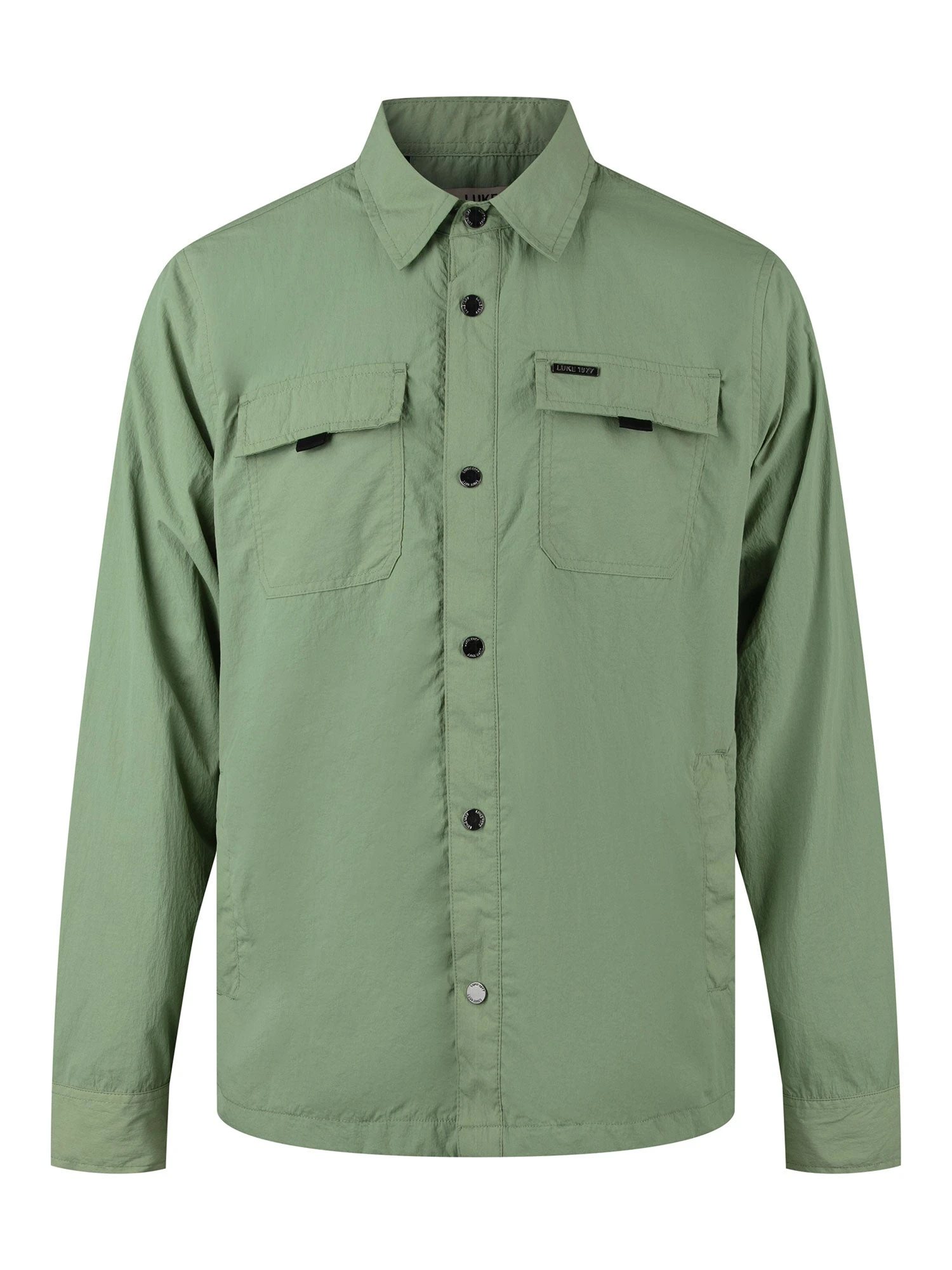 This classic collared shacket from LUKE is perfect to complete any casual fit. It is cut from a lightweight shower proof nylon and features two stylish chest pockets with fastening and woven pull tabs. The left pocket also features the iconic LUKE1977 dark pewter gloss rivet. It is fitted with a full snap summary closure and two lower pockets for all your essentials.