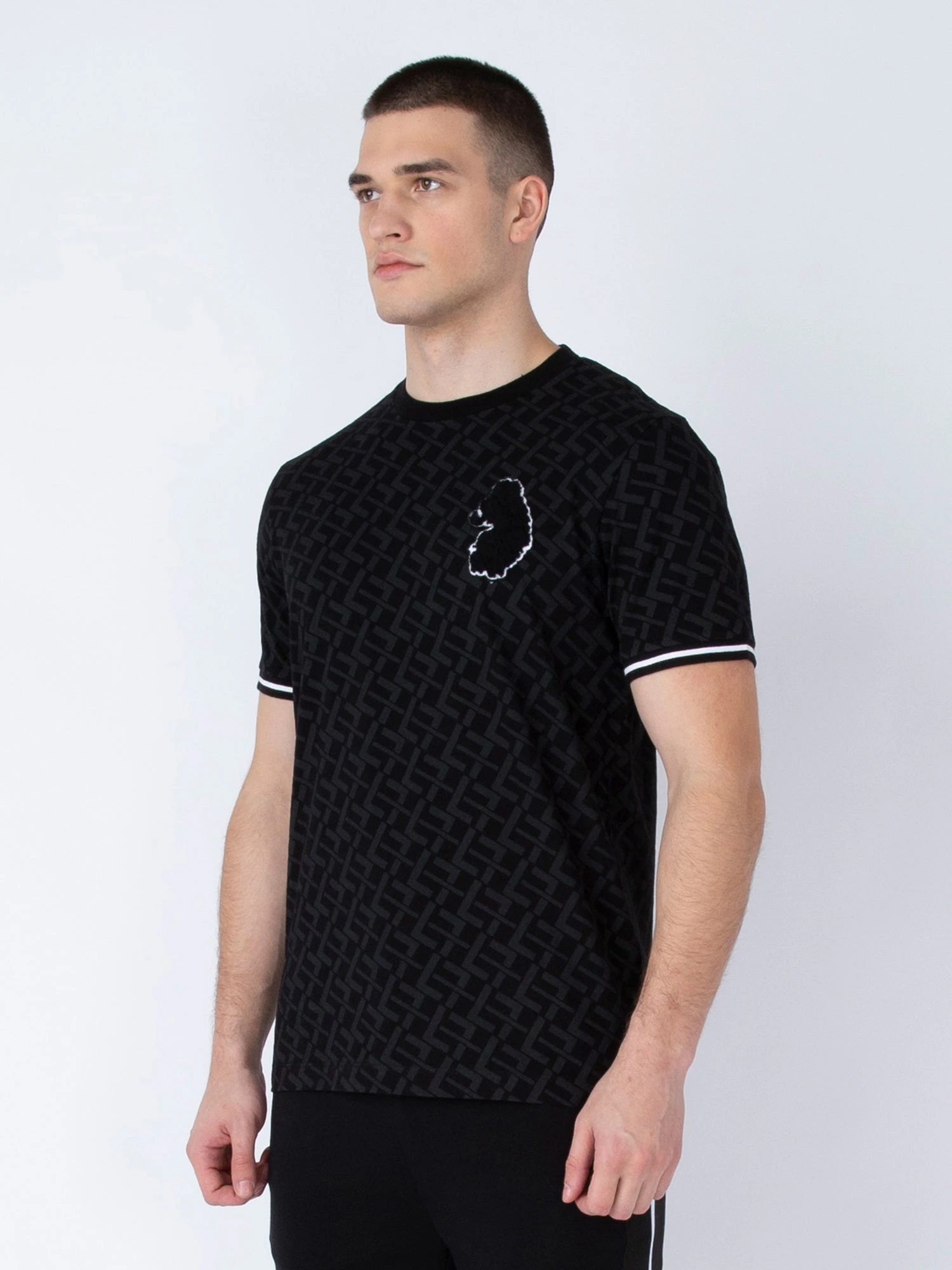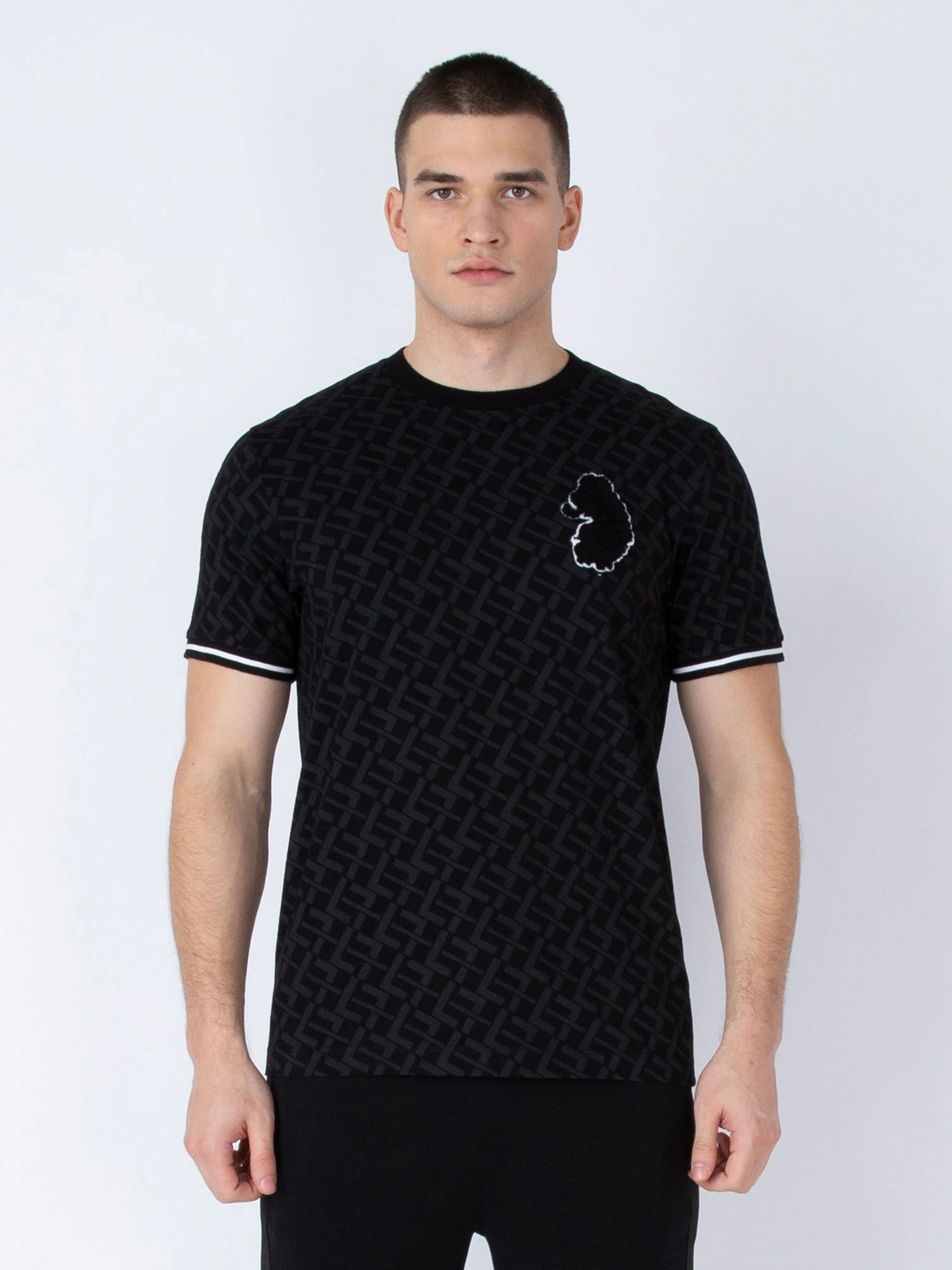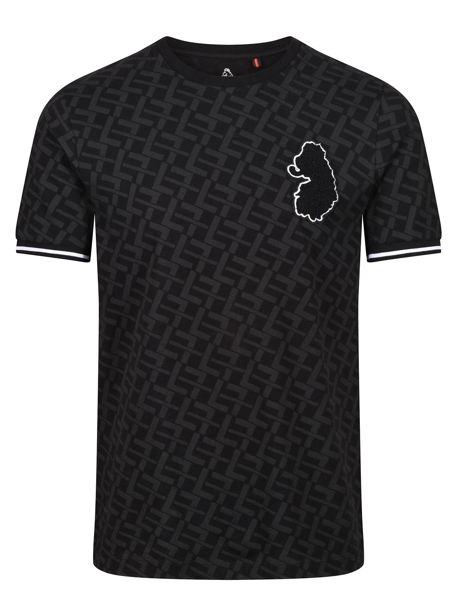 LUKE has taken casual everyday staples to new heights with this varsity inspired tee. Crafted from a premium, mid weight cotton, it is designed with an all over tonal ‘L’ repeat print and detailed with black/white stripe rib cuffs. The look is then signed off with a boucle lion head badge on the left chest.