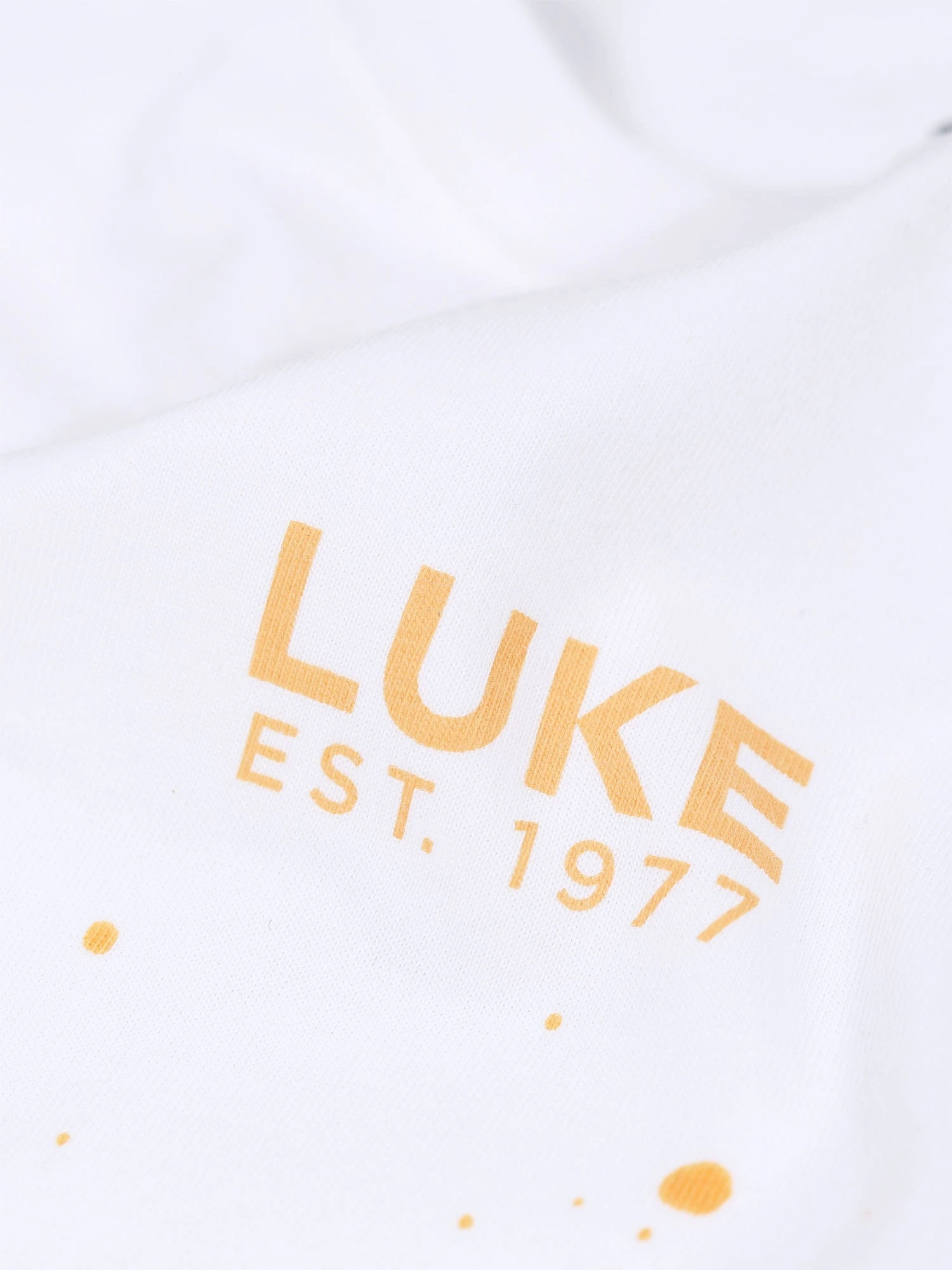 This stylish, paint splatter tee from LUKE is sure to be your go to this season. Cut to a relaxed fit, it is styled with a soft rib crew neck for all day comfort and features a LUKE EST. 1977 text print at the centre of the chest.