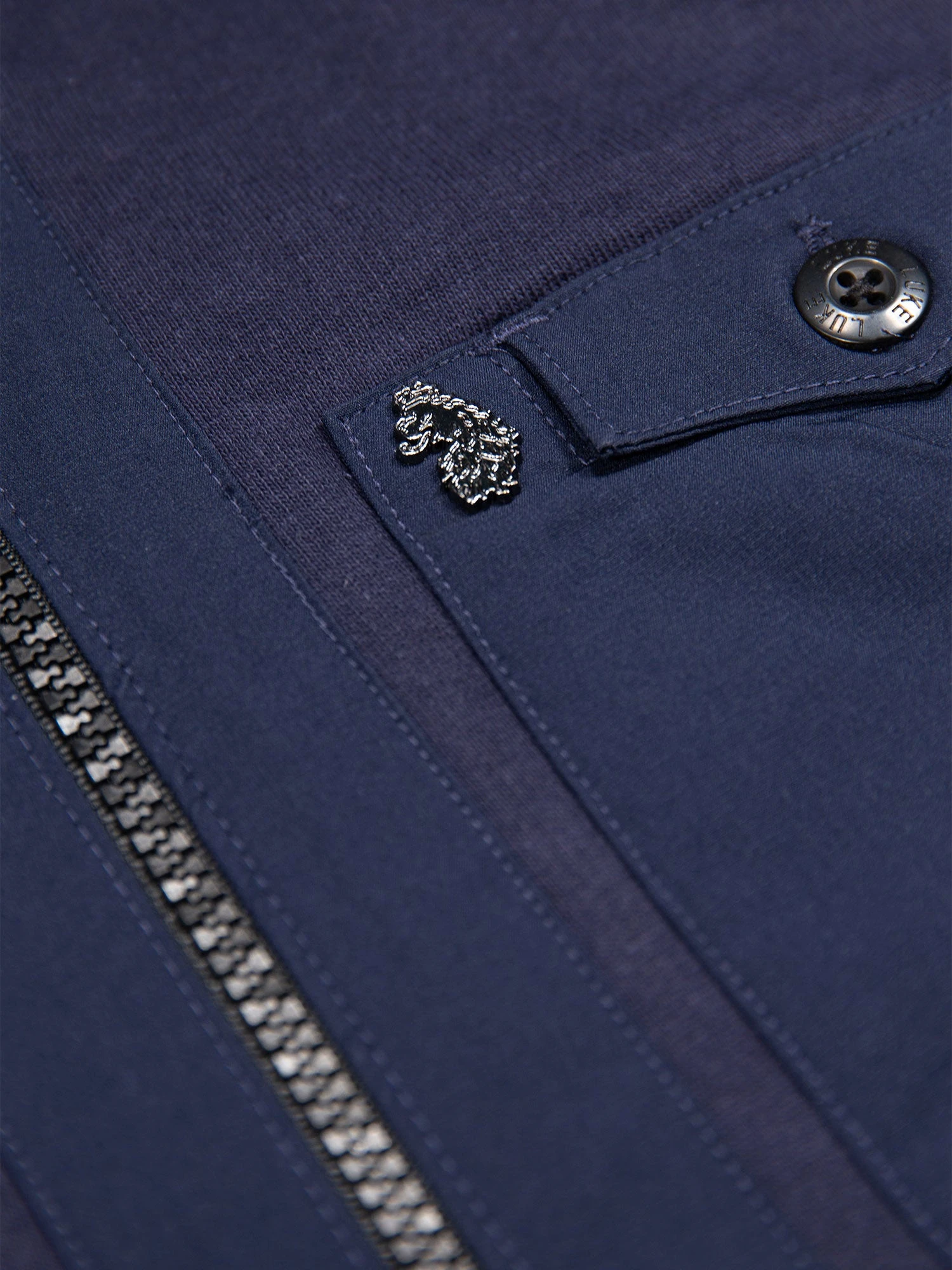 - Iconic LUKE text zip puller in dark pewter gloss