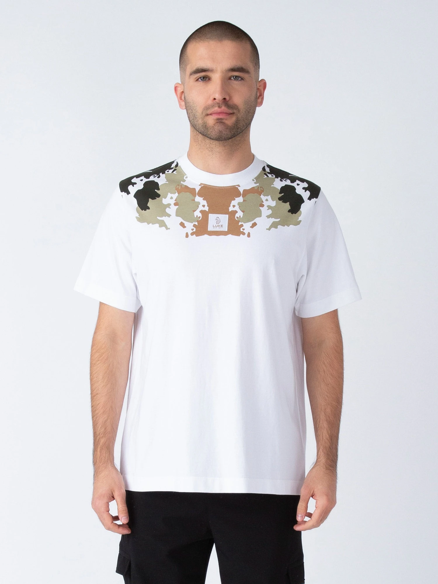 This stylish crew neck tee from LUKE is crafted from a premium pure cotton, cut to a relaxed fit and features a comfy rib neck for all day comfort. It features a camo print and is complete with the brand’s iconic LUKE EST. 1977 woven badge at the front.