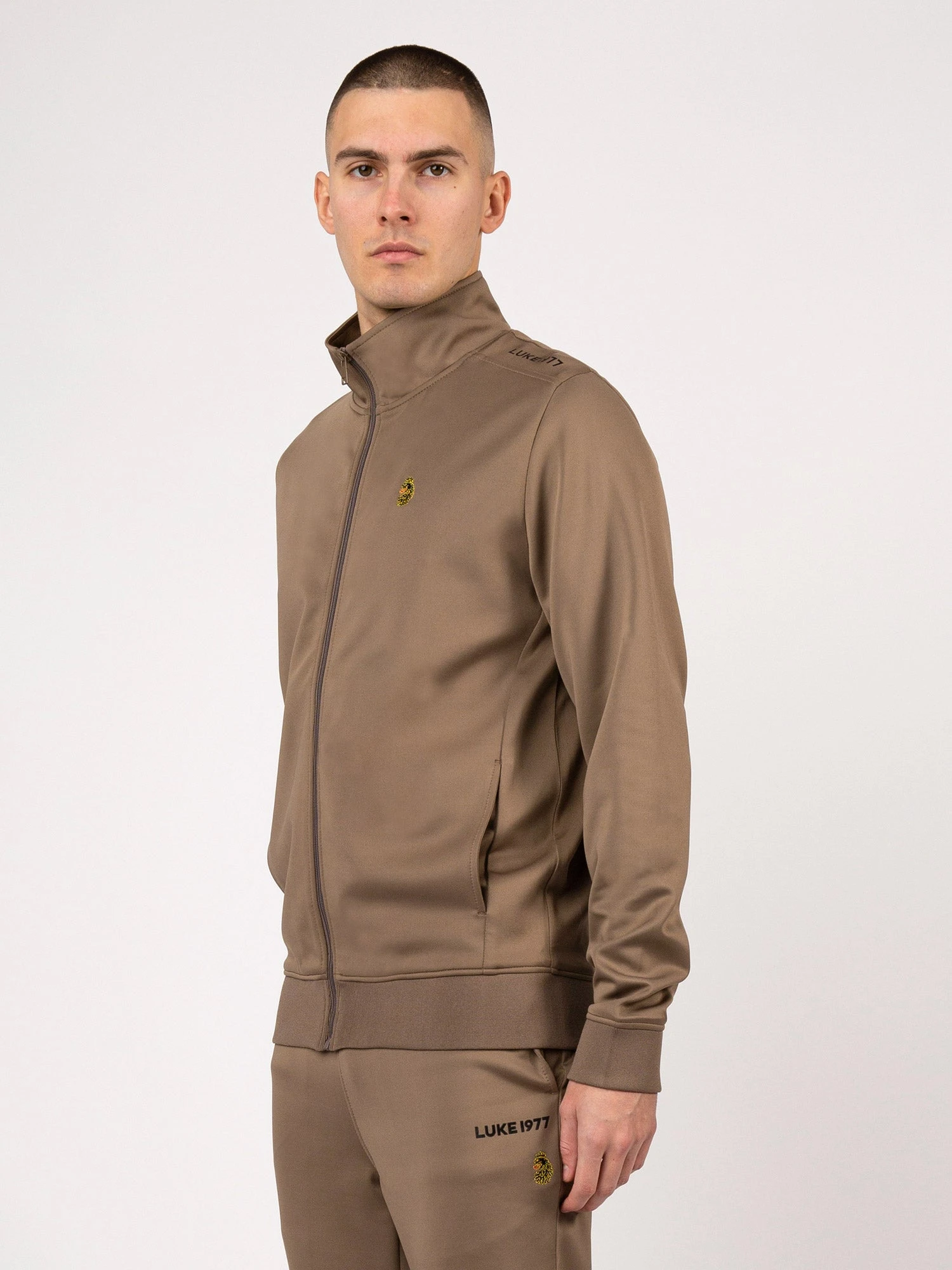 Crafted from a classic tricot, this zip through sweat from LUKE is the ultimate sporty staple. It’s styled with a funnel neck, comfy rib trims and comes equipped with two handy lower pockets. It is detailed with a LUKE 1977 print on the left shoulder yoke and is complete with the brand’s iconic lion head embroidery on the left chest.