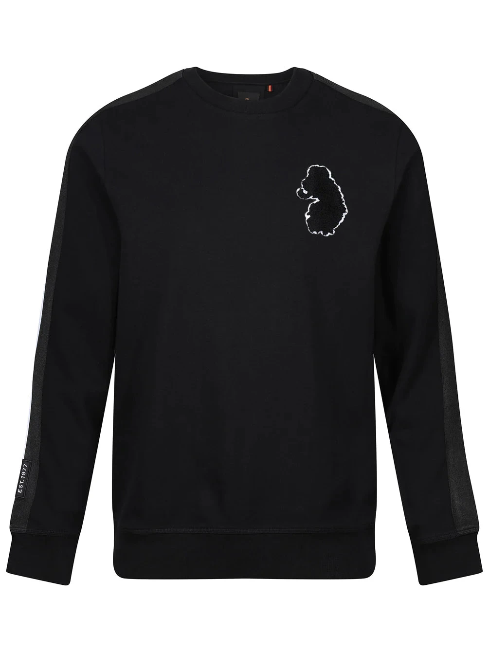 LUKE has taken casual everyday staples to new heights with this varsity inspired sweatshirt. Crafted from a premium cotton interlock, it is fitted with comfy rib trims throughout and features a black/white stripe tape down the sleeves which is detailed with a LUKE EST. 1977 woven badge on the right sleeve. The look is then signed off with a boucle lion head badge on the left chest.