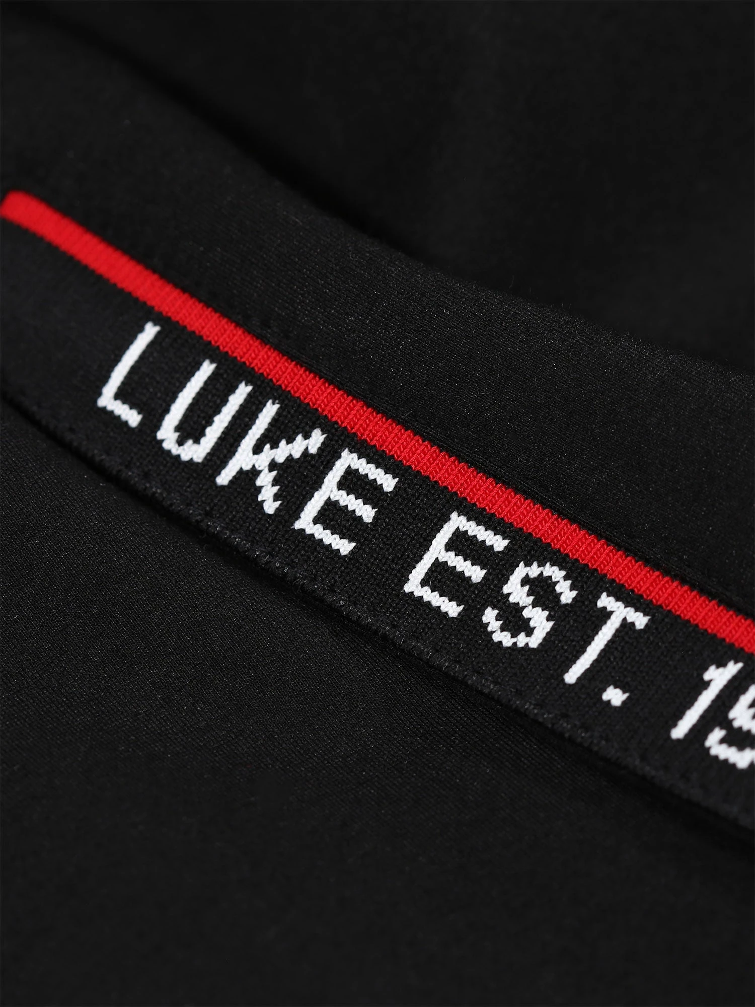 These stylish black shorts from LUKE are your go-to this season. Constructed from a premium interlock fabrication, they’re fitted with a comfy drawcord waist and handy zip pockets- perfect for all your essentials. They are detailed with chrome metal trims throughout and rib pocket welts which feature the LUKE EST. 1977 printed text in white and a contrast red stripe. The look is then signed off with the brand’s iconic lion head embroidery on the left leg.
