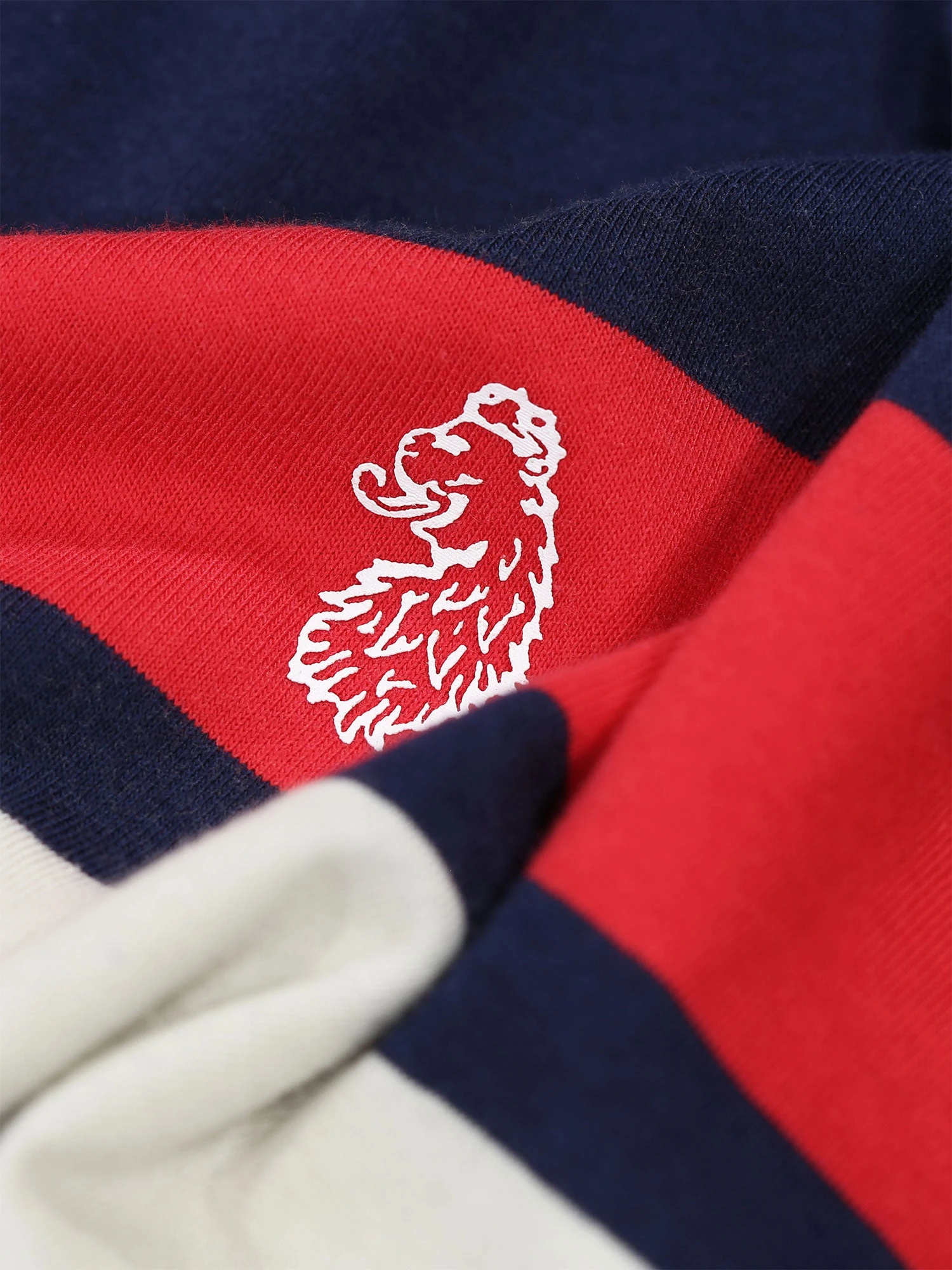 The classic crew neck tee from LUKE is cut from a super soft cotton and features contrast yarn dyed stripes across the chest and sleeves. It is detailed with soft rib trims throughout and is complete with the brand’s iconic raised lion print on the left chest.